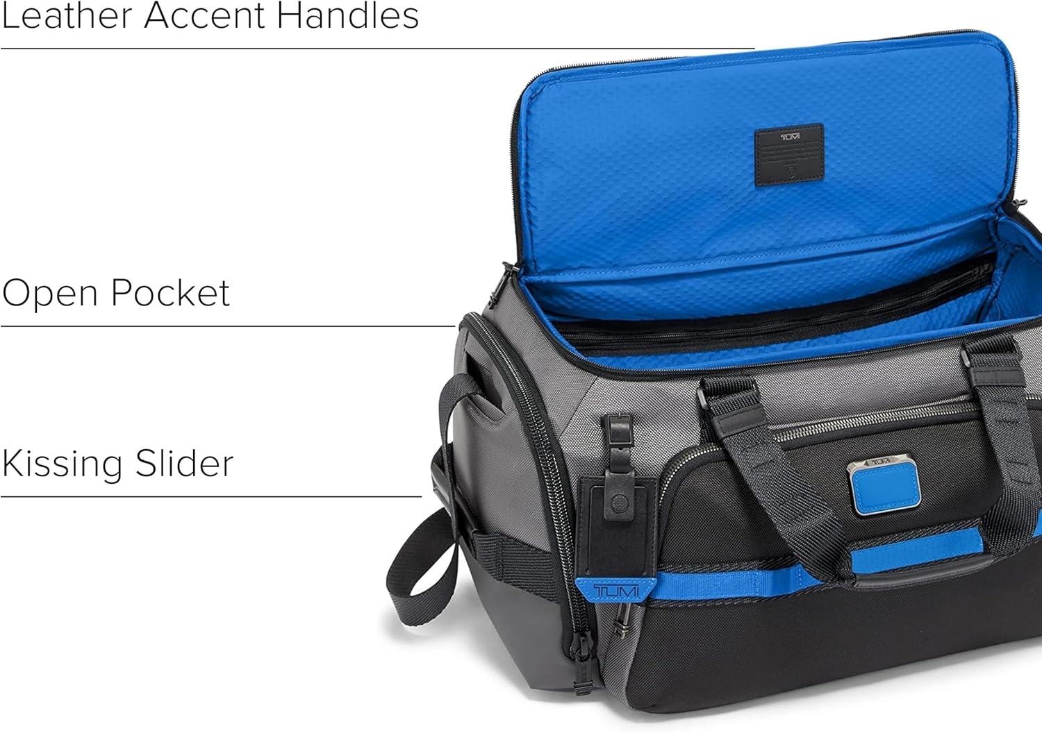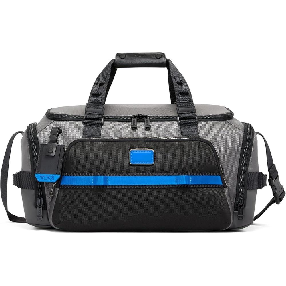 TUMI – Alpha Bravo Mason Duffel – Men’s Weekender, Gym and Overnight Travel Bag – Fits Up To 15″ Laptop – 11.0″ X 19.5″ X 10.3″ – Navy Coated Canvas(Grey/Blue)