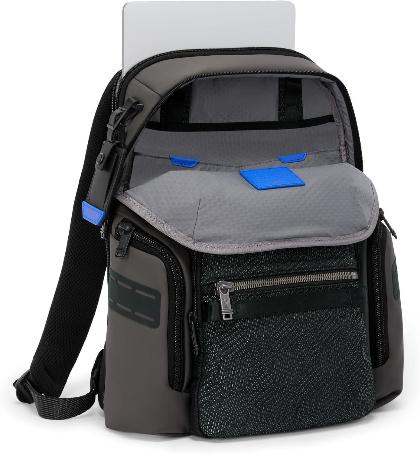 Modern backpack for everyday use. Ideal for work or travels featuring multiple organizing pockets, padded tablet pocket, and TUMI tracer