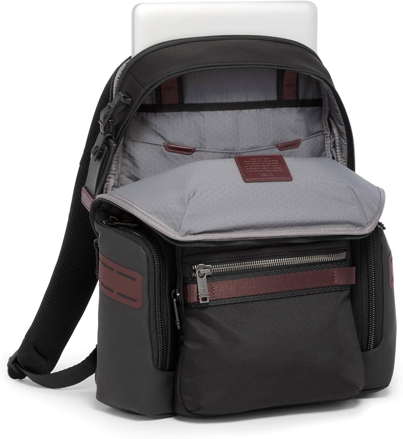 Modern backpack for everyday use. Ideal for work or travels featuring multiple organizing pockets, padded tablet pocket, and TUMI tracer