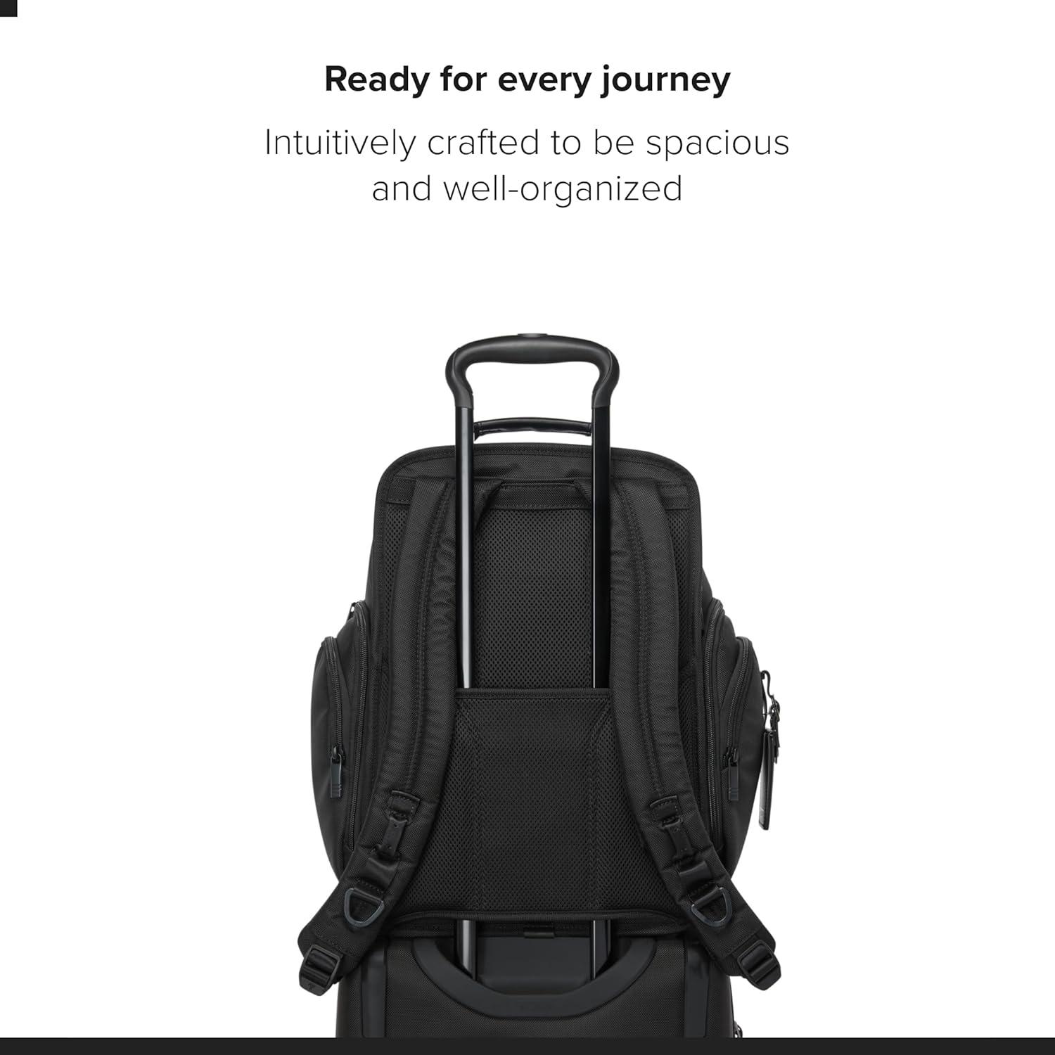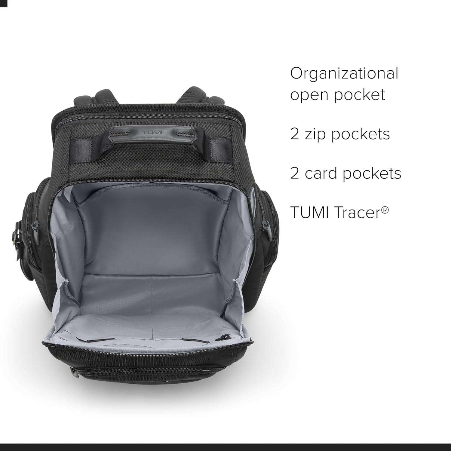 TUMI Alpha has evolved, featuring improved design details, updated functionality and enhanced performance. Built for professionals and frequent travelers who value quality and efficiency. Alpha is engineered to perform, featuring maximum durability and unparalleled functionality. Travel confidently with the TUMI Alpha Brief Pack, an iconic backpack designed for professionals who demand more from every journey. Built to take your office with you—and then some—this versatile brief pack combines a streamlined, modern aesthetic with exceptional functionality. Crafted from durable ballistic nylon with a recycled lining, it delivers long-lasting performance with elevated touchpoints throughout. Designed for superior organization, the interior features a padded laptop compartment that fits up to a 15” PC or 16” MacBook, along with a padded tablet compartment. A comprehensive organizational layout includes two zip pockets, two media pockets, two elastic pockets, a large open pocket, an organizational open pocket, two card pockets, pen loops, a hidden pocket behind the leather patch, a key leash, and TUMI Tracer for added peace of mind. Exterior access is thoughtfully arranged for convenience, with zip entry to the main compartment featuring a magnetic zip garage, two front U-zip pockets, two side zip pockets, and a side L-zip pocket with an internal key leash. A dedicated side L-zip entry to a water-resistant water bottle pocket keeps hydration close at hand. A back quick-access microfiber-lined pocket with hidden magnetic snap closure secures essentials. The Alpha Brief Pack includes adjustable shoulder straps with tail keepers, a webbing top carry handle with leather wrap, two D-rings, and an Add-a-Bag sleeve for seamless attachment to rolling luggage. We design for you. Our commitment to exceptional quality and high-performing products has made TUMI the leading lifestyle and accessories brand that travelers depend on consistently.