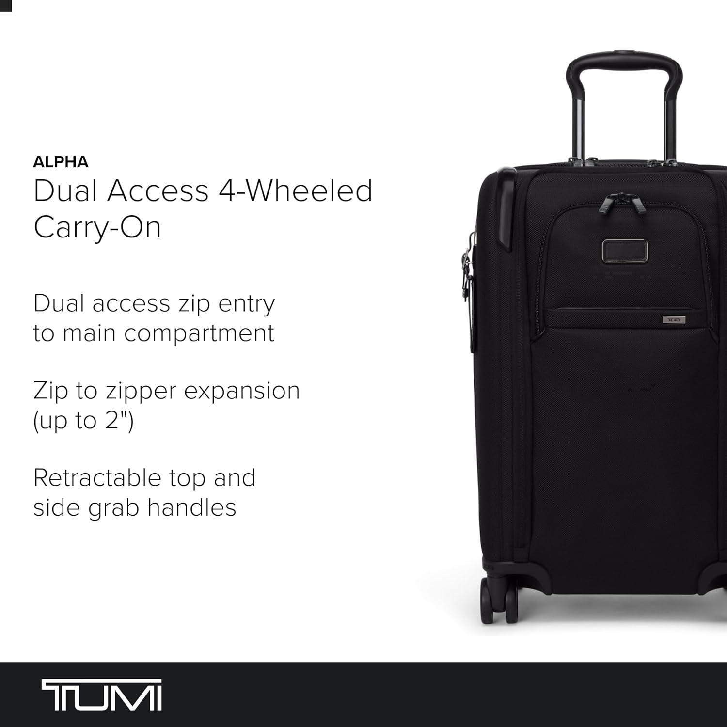 TUMI – Alpha Dual Access Expandable 4-Wheeled Carry-On Luggage – Zipper Expansion, Durable Ballistic Nylon Lightweight Suitcase with TSA Lock – Black(Black)