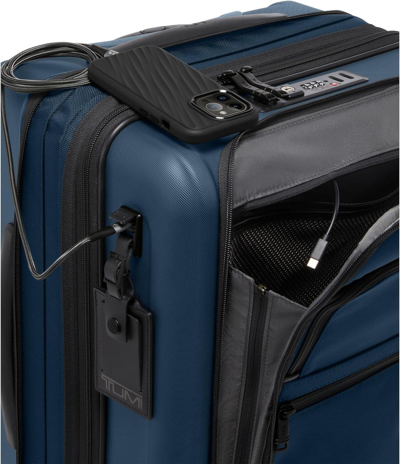 Travel comfortably and in style with the TUMI Alpha Continental Expandable 4-Wheeled Carry-On, your ultimate travel companion for short trips and weekend getaways. This stylish suitcase blends TUMI's innovative design with superior functionality. It boasts durable nylon construction, making it a resilient choice for travel. Its 4-wheeled suitcase design plus telescoping handle ensures smooth maneuverability, making this unisex suitcase perfect for both business and leisure travel.The continental carry-on luggage is not just about looks; it's about packing smart. With an expandable zipper feature, it transforms from a compact silhouette to an expanding suitcase with wheels, offering up to 2 inches of additional space. Compression straps inside keep your belongings neatly in place, while a variety of pockets ensure everything stays organized. The built-in USB-C charging port keeps your devices powered up, so you're always connected.For peace of mind, this travel suitcase with wheels comes with an integrated TSA lock, securing your essentials wherever you go. The TUMI Tracer program is an added layer of protection, helping you reunite with your bag if it ever gets lost. Whether you're looking for a 4-wheeled carry-on suitcase, a suitcase for airports, or simply a reliable carry-on suitcase for your next journey, this spinner suitcase is designed to meet the demands of the sophisticated traveler.We design for you. Our commitment to exceptional quality and high performing products have made TUMI the leading lifestyle and accessories brand that travelers depend on consistently. This is what we call the TUMI Difference.By putting excellence and quality first, we are committed to creating quality TUMI products that have lifelong purpose, are supported by our rigorous testing standards, use recycled materials and our global repair network.