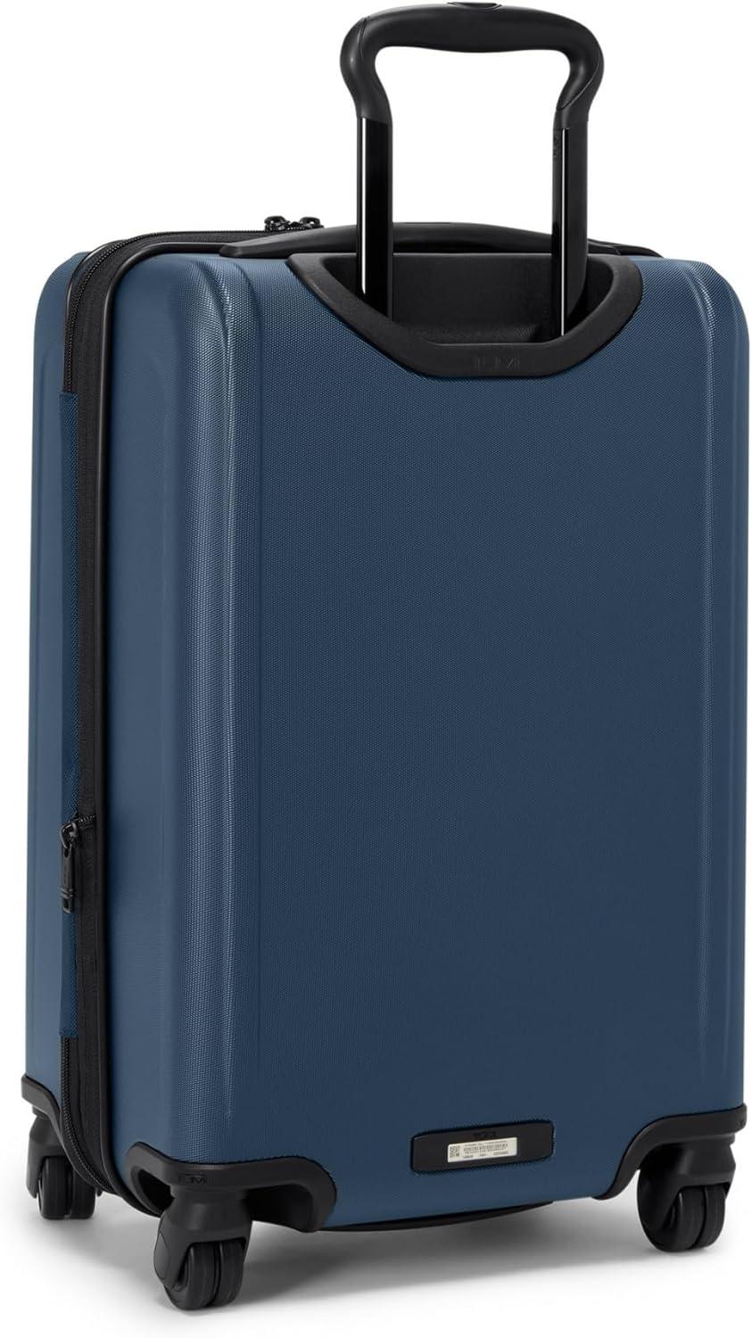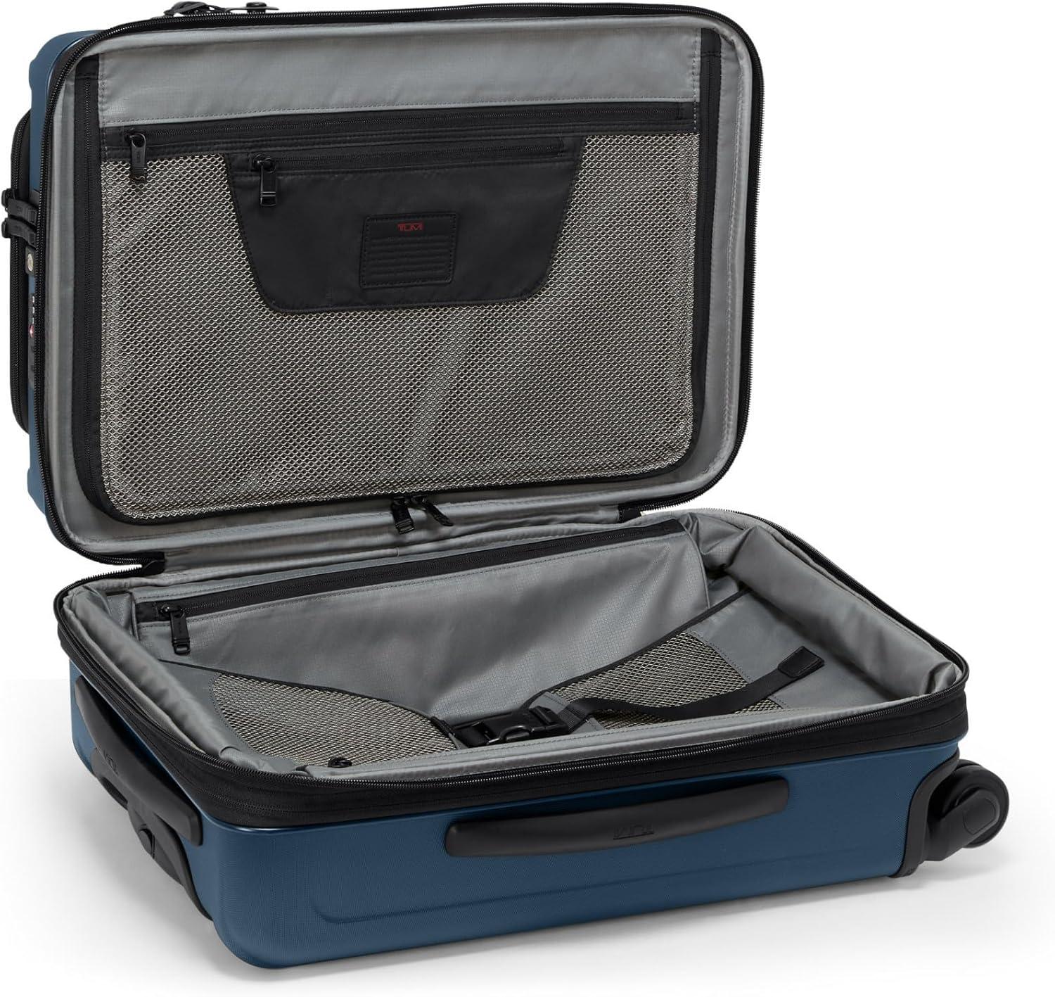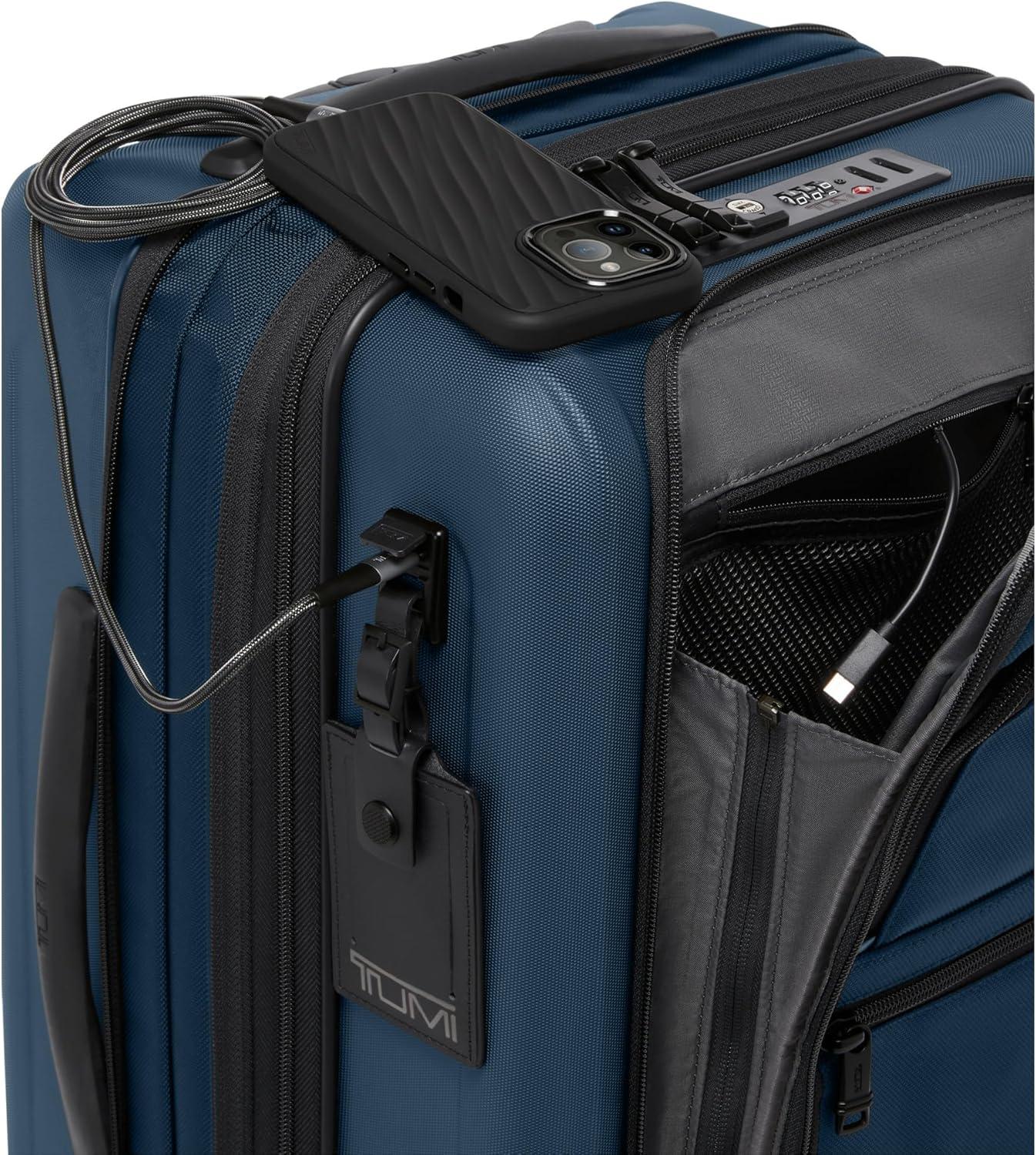 Travel comfortably and in style with the TUMI International Expandable 4 Wheeled Carry-On, designed meticulously for the discerning globetrotter. Our rolling suitcase embodies sleek sophistication and smart functionality, making it the ultimate companion for domestic or international travel. The durable FXT ballistic nylon construction ensures your clothes and traveling supplies remain secure from takeoff to touchdown. With our innovative design, this carry on luggage bag isn't just a statement of elegance; it's a testament to TUMI's commitment to excellence.Experience unparalleled ease of movement with our 4 wheel bag, featuring smooth spinner wheels that glide effortlessly across many terrains. The retractable top handle and side grab handles make this wheeled suitcase a breeze to handle, ensuring you can navigate crowded airport terminals and narrow airplane aisles with confidence. The integrated USB port provides on-the-go charging, ensuring your devices are always powered up, so you can stay connected no matter where your travels take you.For those who need a little extra room, our carry on bag expands to accommodate your packing needs without sacrificing style or convenience. The thoughtfully designed interior includes compartments for organizing your clothes and travel necessities, while the exterior exudes the timeless TUMI aesthetic. Whether it's a quick weekend getaway or an extended voyage, our expandable luggage offers the perfect blend of luxury, functionality, and durability.We design for you. Our commitment to exceptional quality and high performing products have made TUMI the leading lifestyle and accessories brand that travelers depend on consistently. This is what we call the TUMI Difference.By putting excellence and quality first, we are committed to creating quality TUMI products that have lifelong purpose, are supported by our rigorous testing standards, use recycled materials and our global repair network.