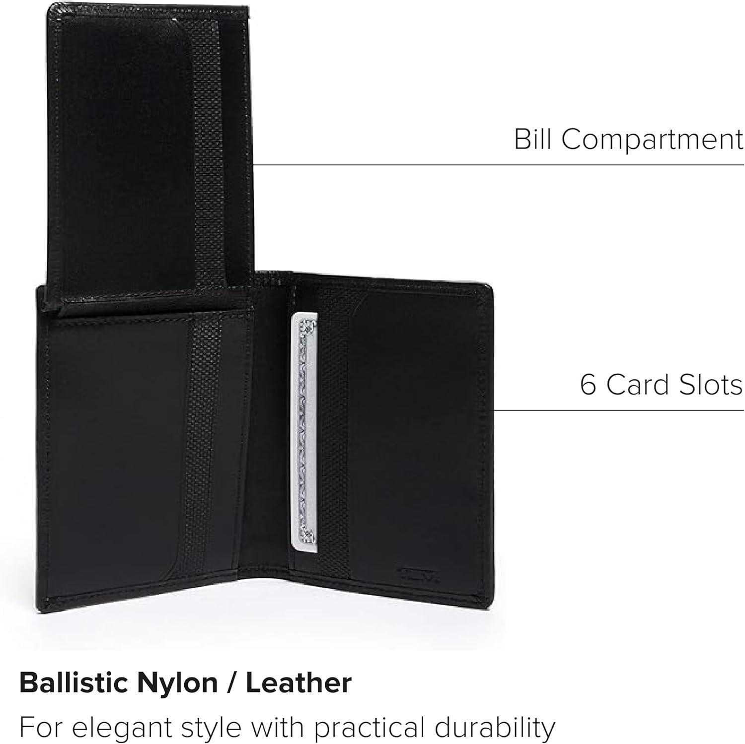 - Interior contains single bill compartment, ID window, six card slots, and three slip pockets.