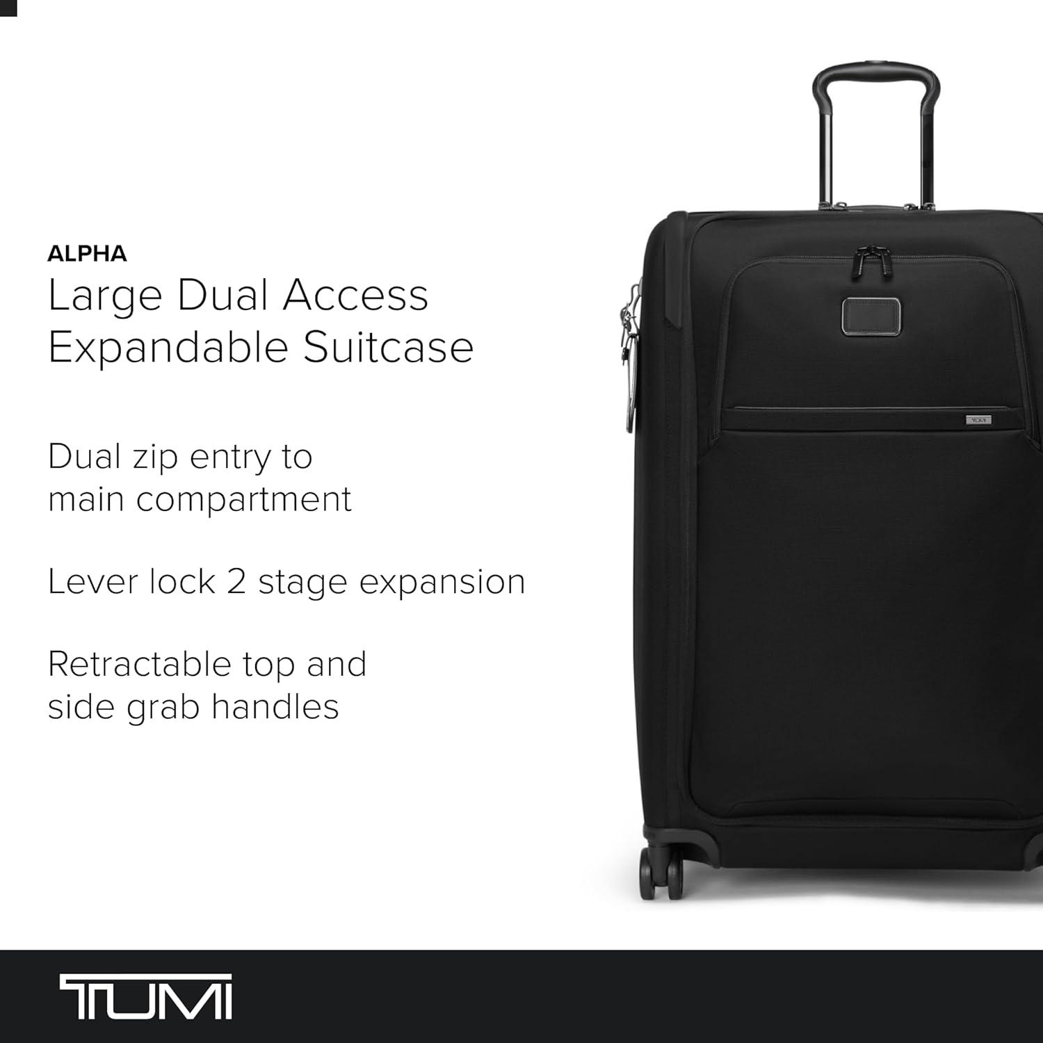 TUMI – Alpha Large Dual Access Expandable 4-Wheeled Checked Luggage – Zipper Expansion, Large Capacity Suitcase – TSA Lock(Black)