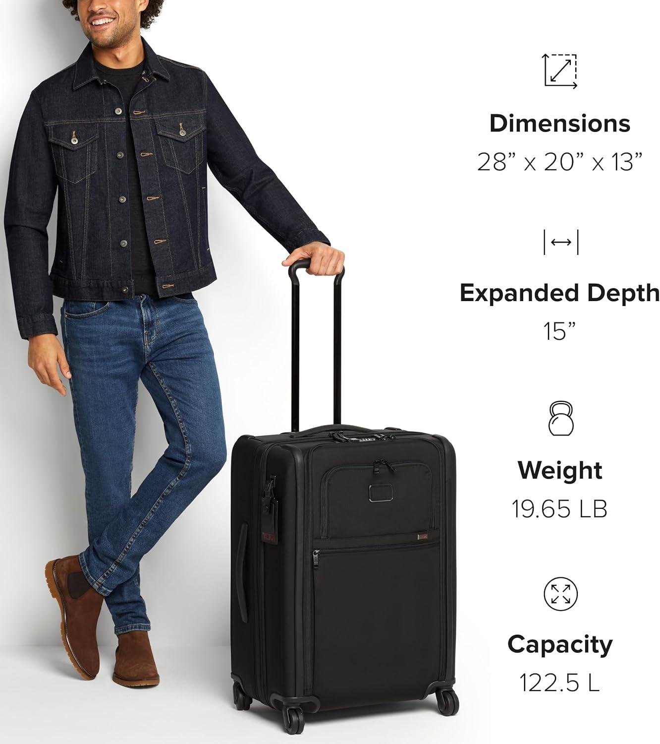 TUMI Alpha has evolved, featuring improved design details, updated functionality and enhanced performance. Built for professionals and frequent travelers who value quality and efficiency. Alpha is engineered to perform, featuring maximum durability and unparalleled functionality. Travel confidently with the TUMI Alpha Medium Dual Access Expandable Checked Luggage, a large-capacity suitcase built for travelers who demand more from every journey. Designed with a streamlined aesthetic, this expandable checked luggage is crafted from TUMI’s signature FXT Ballistic Nylon with a recycled lining, delivering exceptional durability and elevated performance for extended trips. Engineered for smarter packing, this dual-access suitcase features a dual zip entry to the main compartment and a front U-zip pocket for quick access to essentials. A lever-lock two-stage expansion provides added capacity when needed. Interior organization includes two zip pockets, a mesh zip pocket, an open pocket, compression straps, and a zip divider separating front and back compartments. A hanger bracket (hanger sold separately) and an integrated AirTag pocket add convenience and peace of mind. Smooth maneuverability comes from four dual outboard wheels paired with a three-stage telescoping handle. Retractable top and side grab handles, a bottom grab handle, and four side feet make lifting and handling easier, while molded, impact-resistant side panels provide added protection. This expandable checked suitcase includes a built-in dual TSA combination lock and TUMI Tracer, helping reunite you with your luggage if it’s ever lost. We design for you. Our commitment to exceptional quality and high-performing products has made TUMI the leading lifestyle and accessories brand that travelers depend on consistently. This is what we call the TUMI Difference.