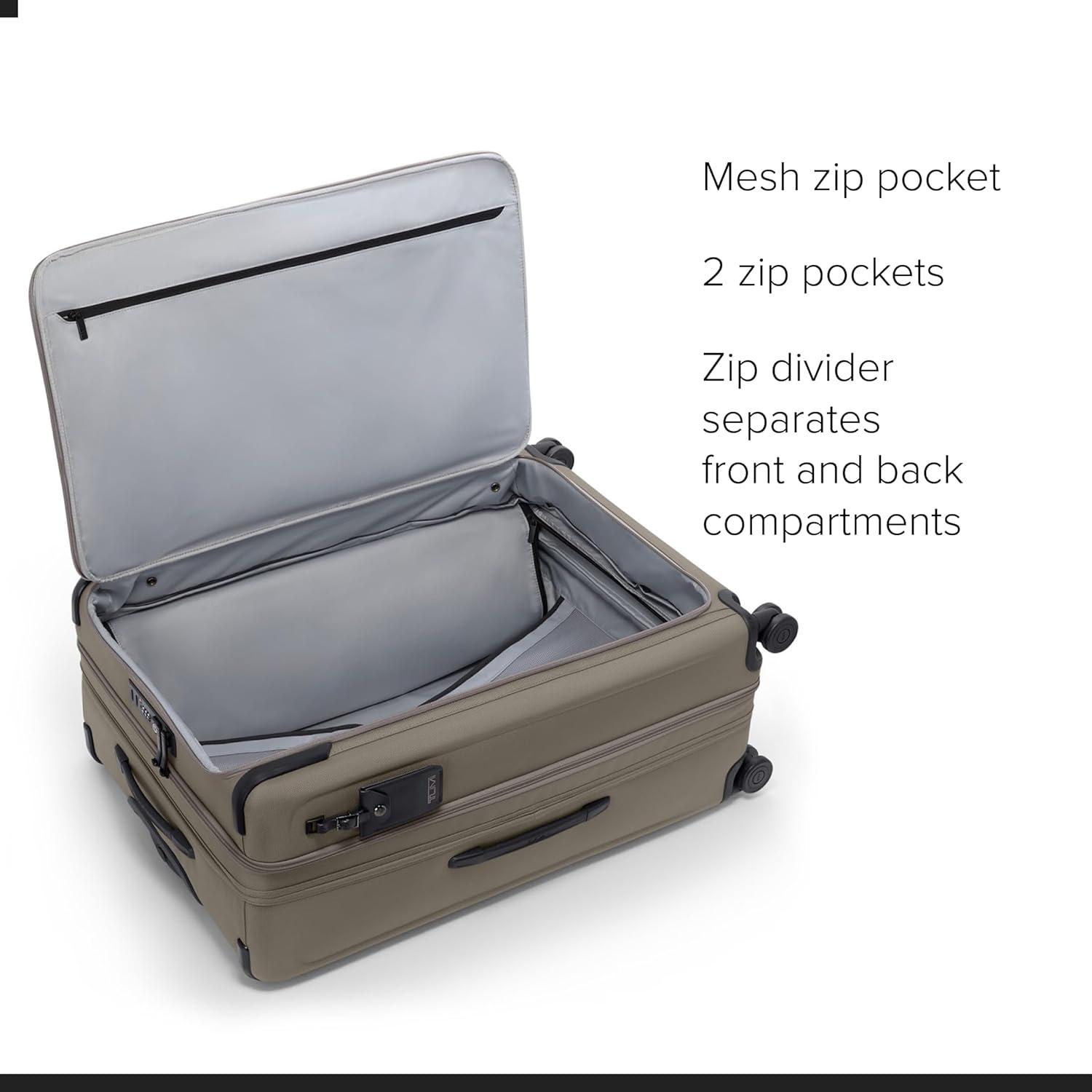 Durable Travel Suitcase: The TUMI X-Large Dual Access Expandable Checked Luggage is a stylish suitcase featuring FXT ballistic nylon for lasting resilience, along with built-in AirTag pocket