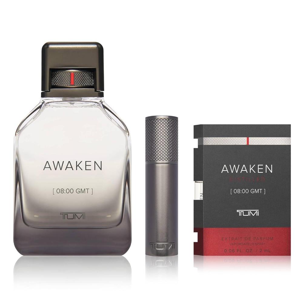 TUMI Awaken [08:00 GMT] – Liquid Perfume Fragrance for Men – Refreshing & Stimulating Cologne with Woody Notes – Bundle Collection