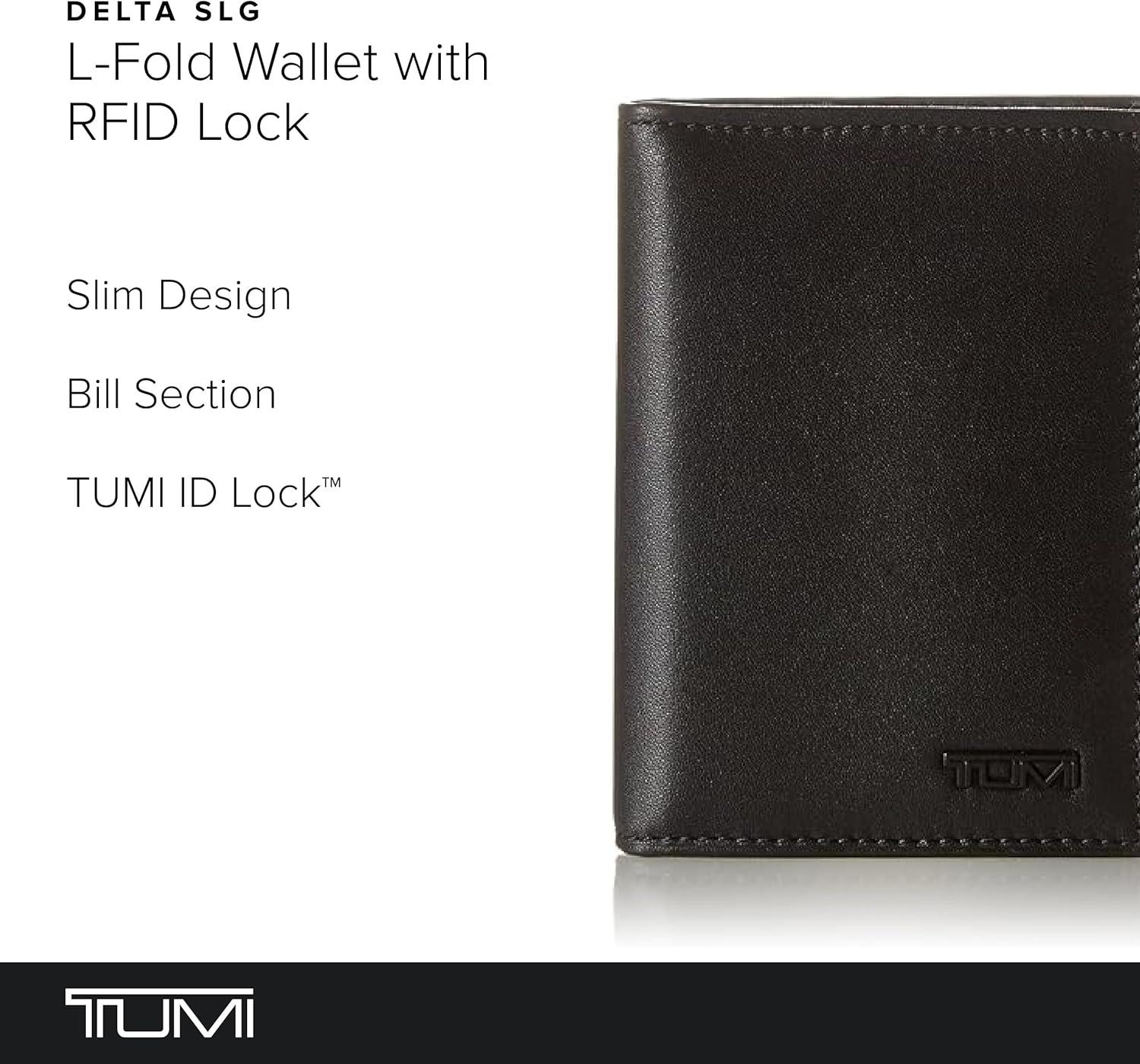 TUMI – Delta L-Fold Wallet with RFID Lock – Slim Bifold Leather Wallet – ID Window & Card Slots – Premium Gift Box – 4″ x 3″ – Black