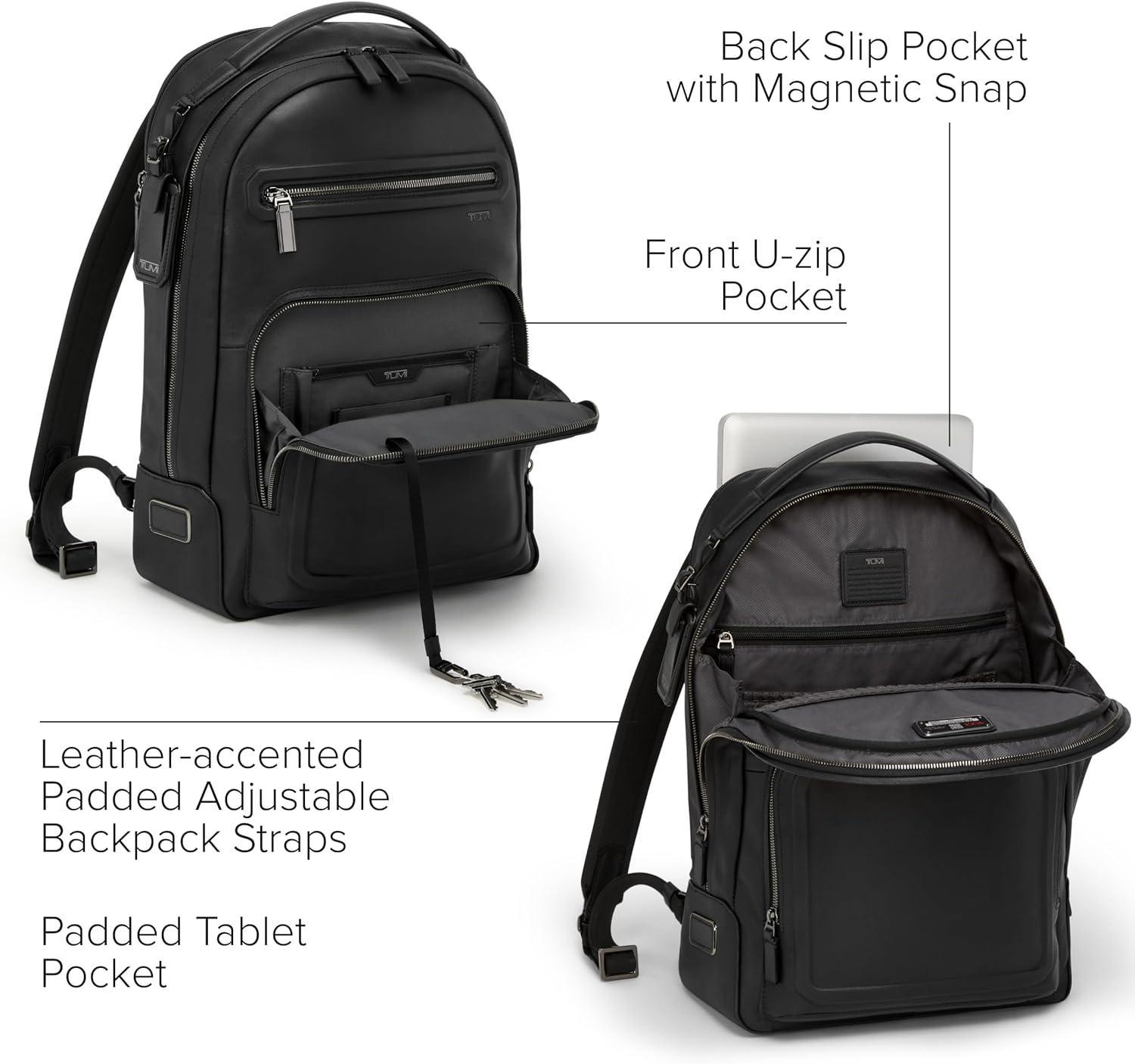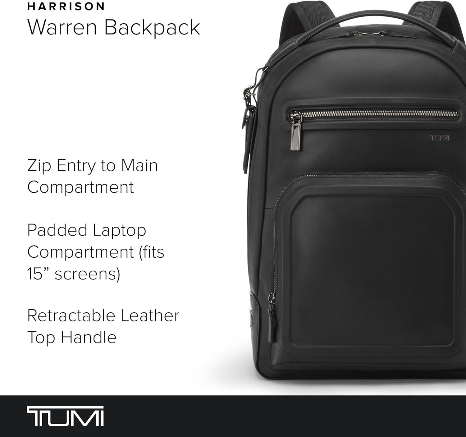 Travel comfortably and in style with the TUMI Harrison Warren backpack, a quintessential companion for the discerning professional. This sleek and sophisticated backpack offers a protective, padded 15-inch laptop compartment that ensures your technology stays safe during your urban commutes or while jet-setting across continents. With its expertly designed organizational compartments, this professional laptop backpack ensures all your business essentials are neatly and securely in place.As a business backpack, the Harrison Warren doesn't compromise on aesthetics or functionality. Its thoughtful design includes quick-access pockets, ensuring that your essentials are always at your fingertips.For the traveling professional, this backpack for the computer is an unrivaled choice. It epitomizes what a women's and men's backpack for travel should be: lightweight, versatile, and with a professional silhouette that transitions seamlessly from boardroom to departure lounge. It's an investment in your daily journey towards success.We design for you. Our commitment to exceptional quality and high performing products have made TUMI the leading lifestyle and accessories brand that travelers depend on consistently. This is what we call the TUMI Difference.By putting excellence and quality first, we are committed to creating quality TUMI products that have lifelong purpose, are supported by our rigorous testing standards, use recycled materials and our global repair network.