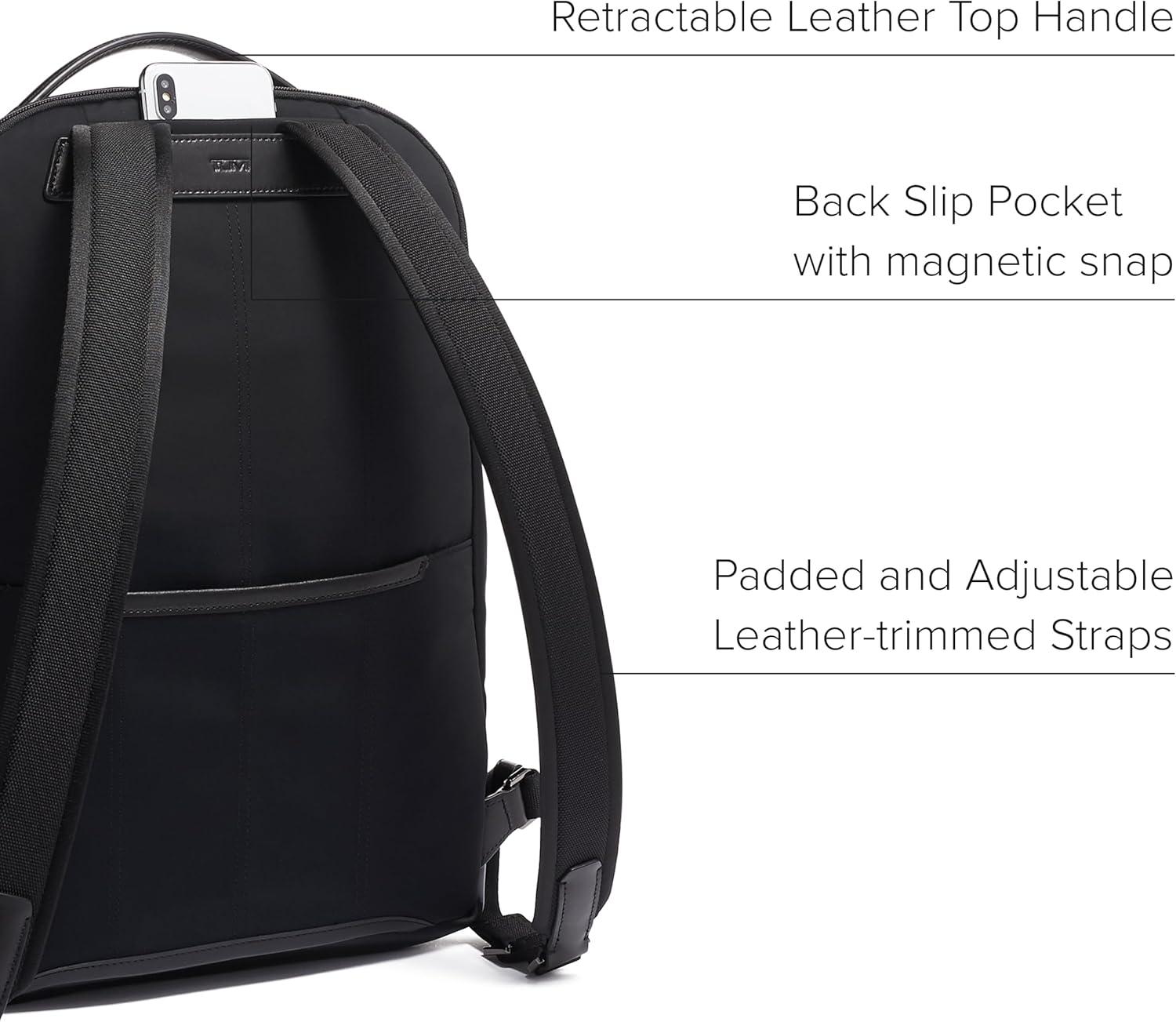 Travel comfortably and in style with the TUMI Harrison Warren backpack, a quintessential companion for the discerning professional. This sleek and sophisticated backpack offers a protective, padded 15-inch laptop compartment that ensures your technology stays safe during your urban commutes or while jet-setting across continents. With its expertly designed organizational compartments, this professional laptop backpack ensures all your business essentials are neatly and securely in place.As a business backpack, the Harrison Warren doesn't compromise on aesthetics or functionality. Its thoughtful design includes quick-access pockets, ensuring that your essentials are always at your fingertips.For the traveling professional, this backpack for the computer is an unrivaled choice. It epitomizes what a women's and men's backpack for travel should be: lightweight, versatile, and with a professional silhouette that transitions seamlessly from boardroom to departure lounge. It's an investment in your daily journey towards success.We design for you. Our commitment to exceptional quality and high performing products have made TUMI the leading lifestyle and accessories brand that travelers depend on consistently. This is what we call the TUMI Difference.By putting excellence and quality first, we are committed to creating quality TUMI products that have lifelong purpose, are supported by our rigorous testing standards, use recycled materials and our global repair network.