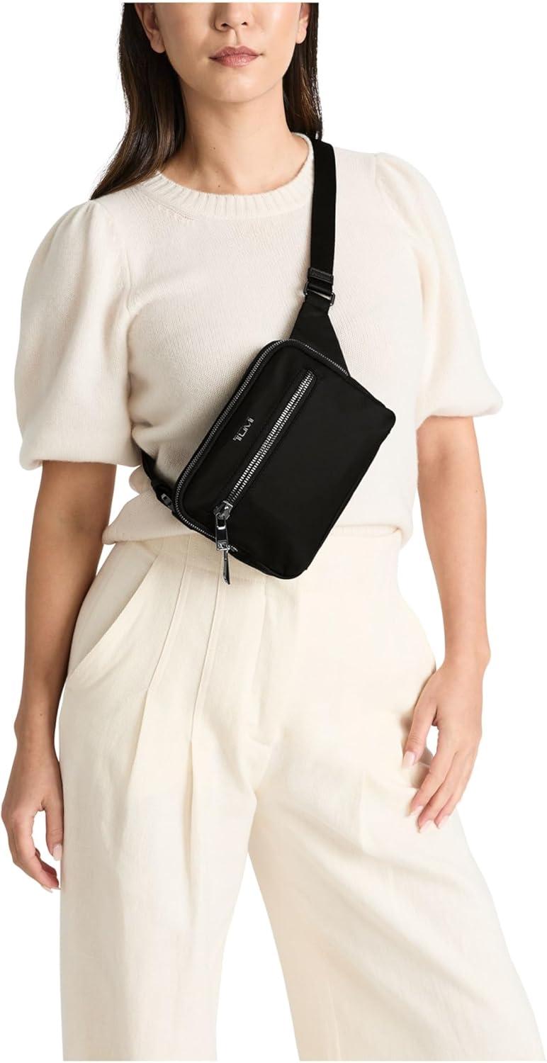 Travel comfortably and in style with the TUMI Voyageur Sedona Crossbody Sling Bag. This nylon crossbody is the epitome of functional fashion, blending a sporty vibe with utilitarian design. Its lightweight structure ensures comfort and ease while navigating the daily hustle or embarking on a weekend adventure. The adjustable strap allows for versatile styling as a crossbody purse or as a sling bag, fitting seamlessly across your body for hands-free convenience.
