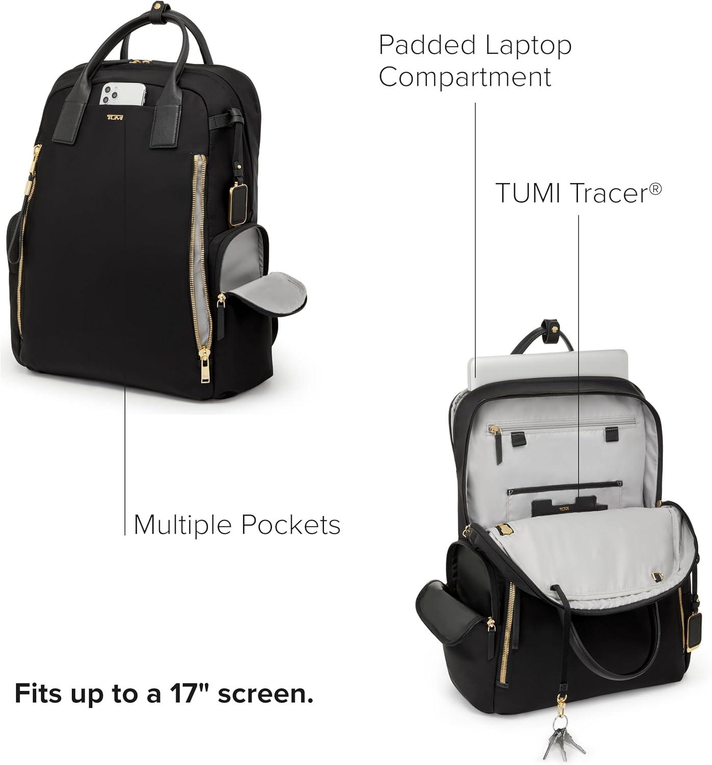 TUMI – Voyageur Atlanta Backpack – Travel Backpack for Women – For Business, Commute – Holds Up to 17″ Laptop – Black & Gold Hardware(Black/Gold)