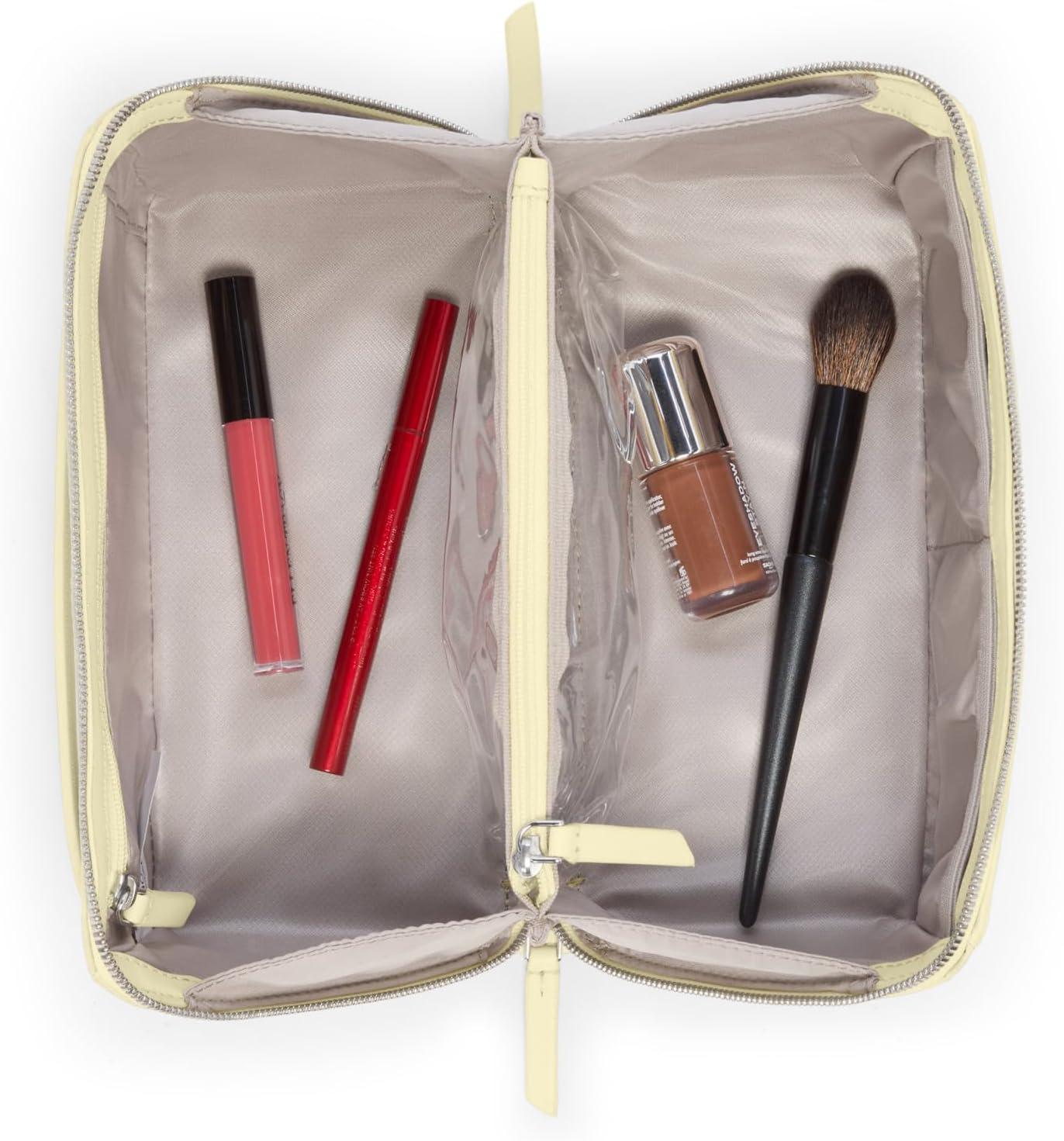 TUMI – Voyageur Dallas Cosmetic Bag – Lay-Flat Travel Makeup Organizer – Packable Travel Kit – Pink Clay(WASHED YELLOW)