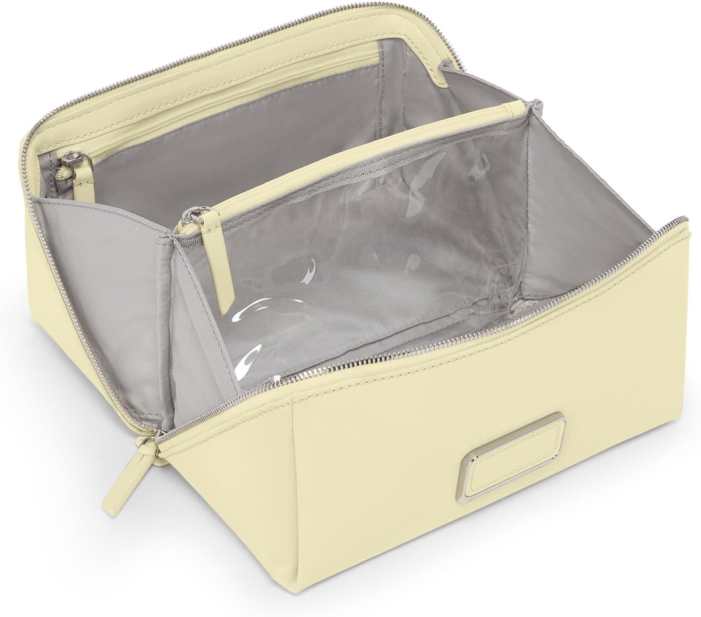 Travel comfortably and in style with TUMI's Voyageur Dallas Cosmetic Case. This thoughtfully designed makeup case combines practical functionality with elegant design, creating the perfect solution for organizing and transporting your beauty essentials. This durable cosmetic bag maintains its sophisticated appearance while providing exceptional organization during weekend getaways or extended trips.The cleverly designed interior features just the right amount of organization to keep your cosmetics, skincare, and personal care items neatly arranged and easily accessible. The wipeable lining ensures simple cleaning after makeup spills or product leaks, extending the life of this practical travel accessory. The compact bag boasts a spacious design that accommodates your essential beauty routine without consuming excessive space in your luggage.Elevate your everyday use makeup bag from purely practical to fashionably functional. The secure zipper closure keeps contents protected during transit, while the sleek profile allows for efficient packing alongside your other travel essentials.From weekend escapes to international adventures, this packable travel container delivers exceptional organization in a refined package. The lightweight design adds minimal weight to your luggage allowance, while the premium construction ensures lasting performance through countless journeys. We design for you. Our commitment to exceptional quality and high performing products have made TUMI the leading lifestyle and accessories brand that travelers depend on consistently. This is what we call the TUMI Difference.By putting excellence and quality first, we are committed to creating quality TUMI products that have lifelong purpose, are supported by our rigorous testing standards, use recycled materials and our global repair network.