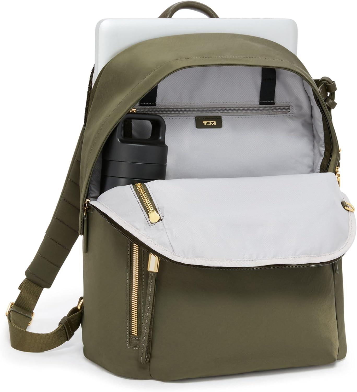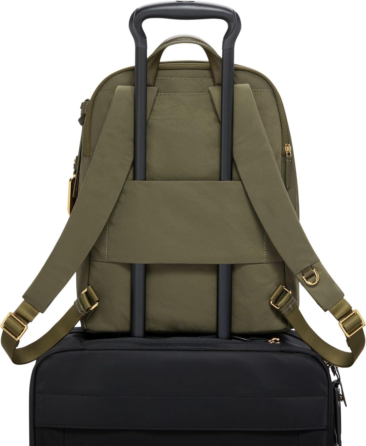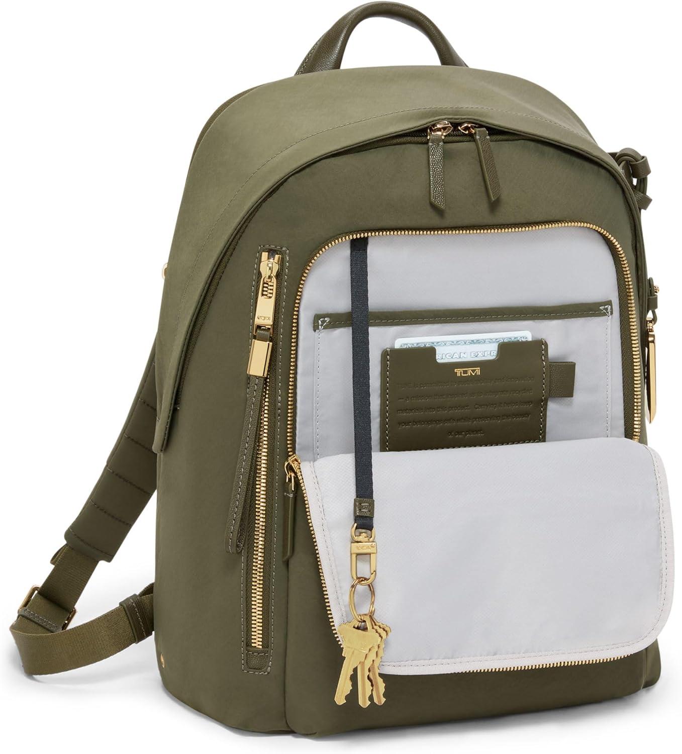 TUMI – Voyageur Halsey Backpack – Travel Backpack – For Business, Fashion, Commute – Holds Up to 14″ Screens – Black & Gold(Olive)