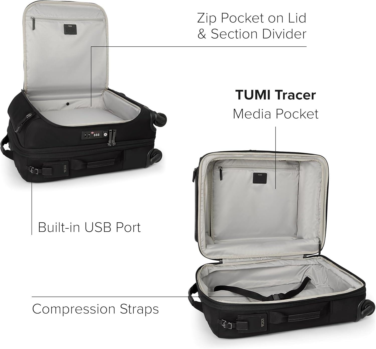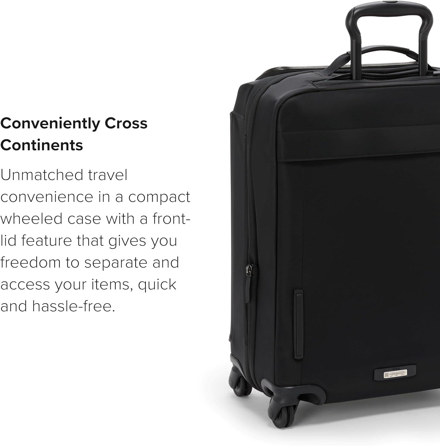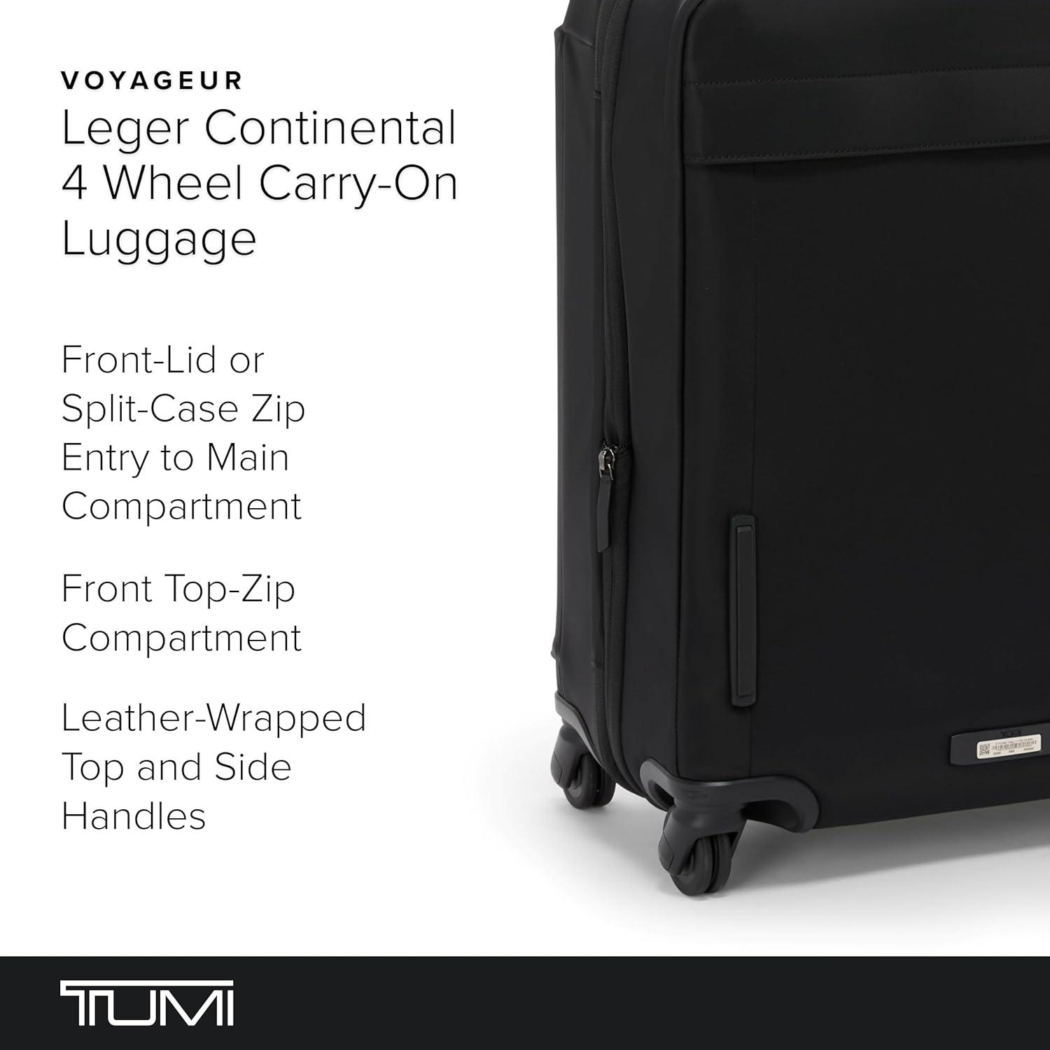 Travel comfortably and in style with our TUMI Voyageur Leger luggage collection. This 4 wheeled suitcase is designed with convenience in mind with a 2″ zip around expansion for additional space when needed (not available on the compact). The front-lid or split-case zip entry allows you to easily access your items, while the locking zipper pulls keep them secure. Plus, the front straight-zip pocket, front U-zip pocket, and front lid compartment provide even more organization options. Our suitcase is functional and stylish. The sleek and modern design is perfect for any fashion-forward traveler. And with the 3-stage telescoping handle and 4 lightweight dual wheels, maneuvering through the airport has never been easier. The leather-wrapped top and side handles, as well as the bottom grab handle, offer even more carrying options. At TUMI, we value quality and durability. That's why our luggage comes with a TUMI Tracer Luggage tag, so you can easily locate your bag if it gets lost. The zip pocket on the lid, zip section divider, media pocket, and compression straps provide even more organization and security. Our women's and men's bag is versatile, making it perfect for any type of travel, whether for business or leisure. We design for you. Our commitment to exceptional quality and high performing products have made TUMI the leading lifestyle and accessories brand that travelers depend on consistently. This is what we call the TUMI Difference. We are innovative by nature and sustainable by choice. TUMI products protect your belongings when you travel. Our planet is an astonishing place, and we believe it’s our responsibility to preserve it for travelers of the future. By putting excellence and quality first, we are committed to creating quality TUMI products that have lifelong purpose, are supported by our rigorous testing standards, use recycled materials and our global repair network.