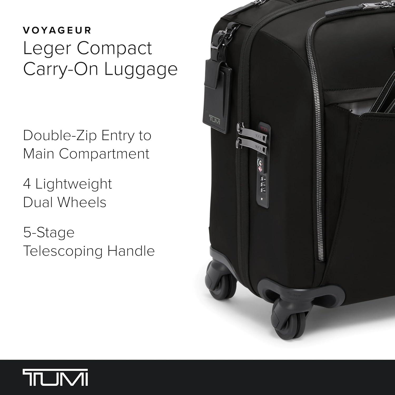 Travel comfortably and in style with our TUMI Voyageur Leger luggage collection. This 4 wheeled suitcase is designed with convenience in mind with a 2″ zip around expansion for additional space when needed (not available on the compact). The front-lid or split-case zip entry allows you to easily access your items, while the locking zipper pulls keep them secure. Plus, the front straight-zip pocket, front U-zip pocket, and front lid compartment provide even more organization options. Our suitcase is functional and stylish. The sleek and modern design is perfect for any fashion-forward traveler. And with the 3-stage telescoping handle and 4 lightweight dual wheels, maneuvering through the airport has never been easier. The leather-wrapped top and side handles, as well as the bottom grab handle, offer even more carrying options. At TUMI, we value quality and durability. That's why our luggage comes with a TUMI Tracer Luggage tag, so you can easily locate your bag if it gets lost. The zip pocket on the lid, zip section divider, media pocket, and compression straps provide even more organization and security. Our women's and men's bag is versatile, making it perfect for any type of travel, whether for business or leisure. We design for you. Our commitment to exceptional quality and high performing products have made TUMI the leading lifestyle and accessories brand that travelers depend on consistently. This is what we call the TUMI Difference. We are innovative by nature and sustainable by choice. TUMI products protect your belongings when you travel. Our planet is an astonishing place, and we believe it’s our responsibility to preserve it for travelers of the future. By putting excellence and quality first, we are committed to creating quality TUMI products that have lifelong purpose, are supported by our rigorous testing standards, use recycled materials and our global repair network.