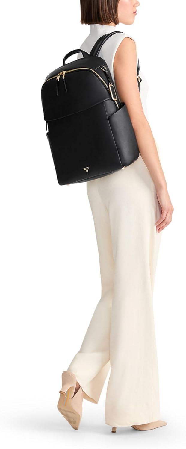 TUMI – Voyageur Raina Backpack – Women’s Premium Leather Backpack – Everyday Bag with Phone Pocket & Laptop Compartment – Black, Light Gold Hardware(Black/Gunmetal)