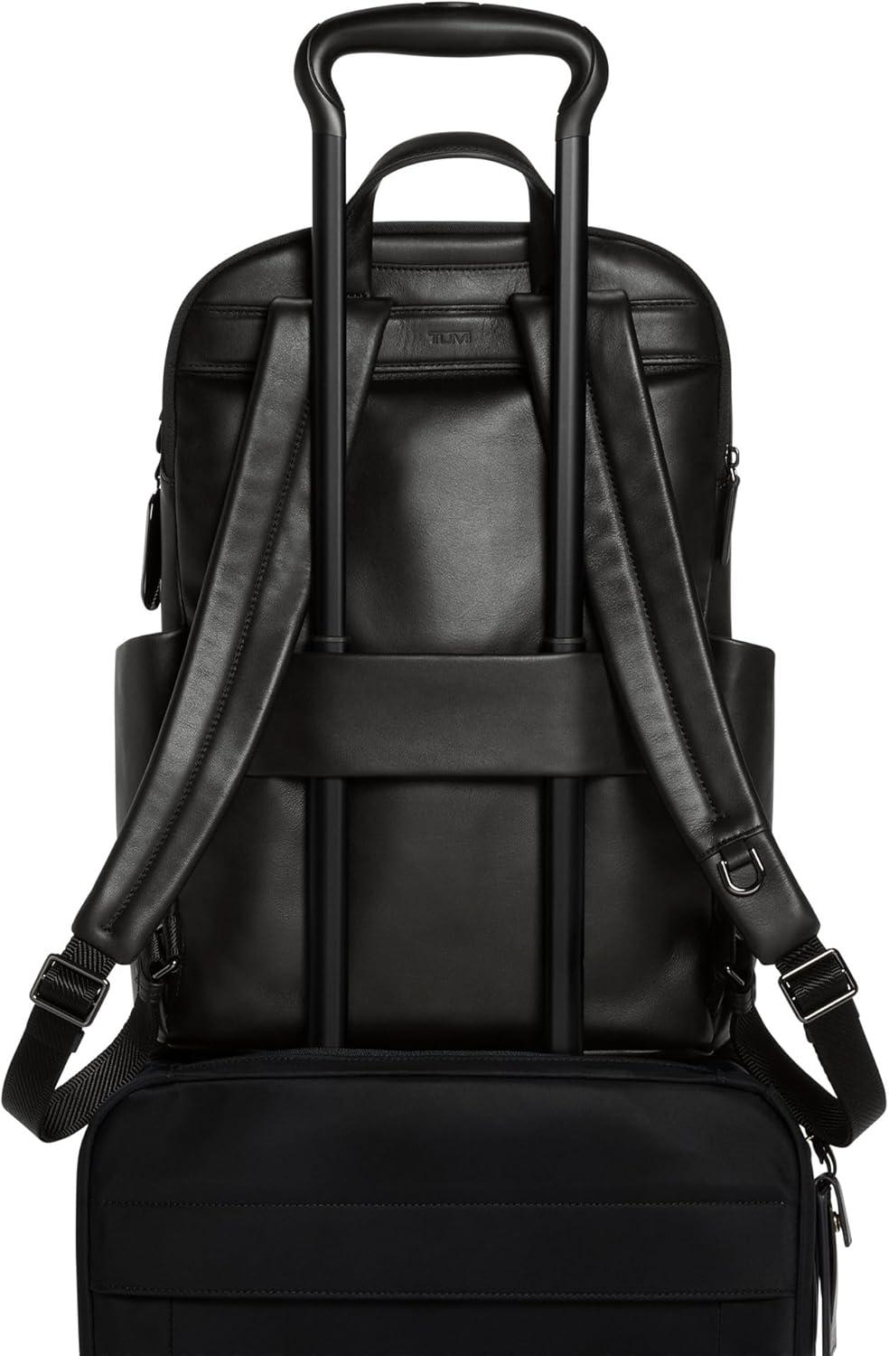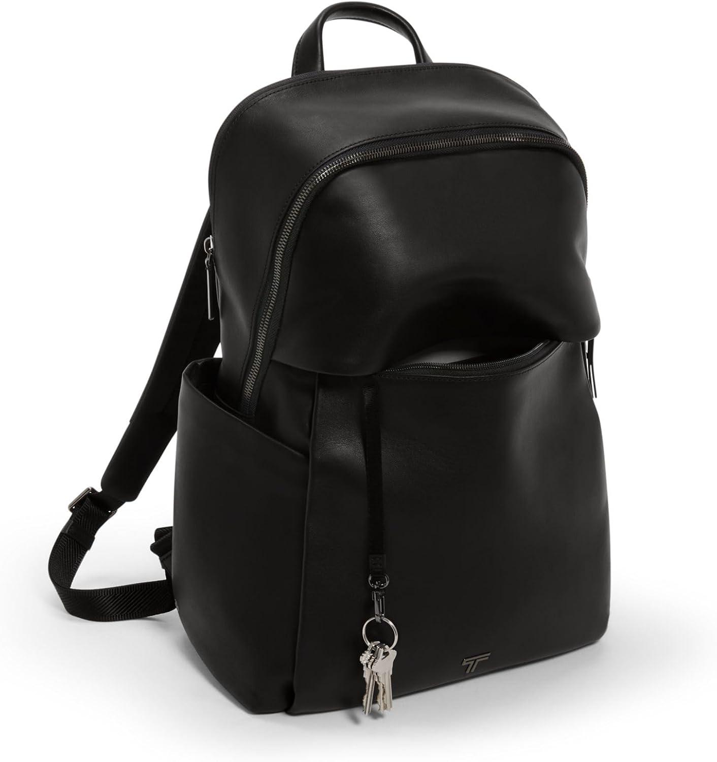 Travel comfortably and in style with the Voyageur Raina backpack, the perfect everyday bag for those who value both functionality and fashion. Designed as a versatile travel backpack, it offers ample space to organize your essentials with multiple zip pockets and a dedicated laptop compartment that fits up to a 15″ laptop. The quick-access phone pocket ensures you can retrieve your device swiftly, while the water-resistant side pocket keeps your water bottle secure during your journeys.This men's and women's backpack boasts a detachable pouch with a carabiner clip, ideal for storing small items like lip gloss, cards, or spare change. The adjustable leather straps and durable leather top handle provide maximum comfort and style, making it a reliable choice for daily use or flight travel. Additional features include a key leash to keep your keys within reach, a padded tablet compartment, and a hidden TUMI Tracer with a leather flap.Crafted from high-quality materials, the Voyageur Raina leather bag combines durability with elegance, suitable for both casual outings and professional settings. The Add-a-Bag strap allows you to attach your luggage seamlessly, while the four metal feet protect the base from wear and tear. Whether you're navigating the city streets or embarking on a weekend getaway, this fashion backpack ensures you have everything you need at your fingertips.We design for you. Our commitment to exceptional quality and high performing products have made TUMI the leading lifestyle and accessories brand that travelers depend on consistently. This is what we call the TUMI Difference.By putting excellence and quality first, we are committed to creating quality TUMI products that have lifelong purpose, are supported by our rigorous testing standards, use recycled materials and our global repair network.