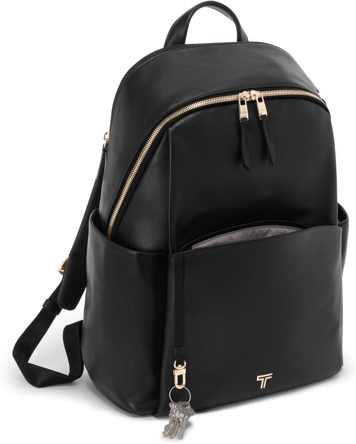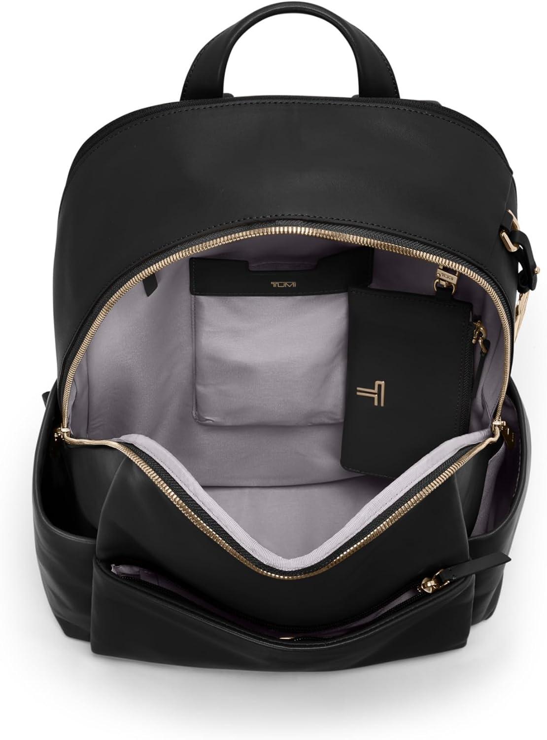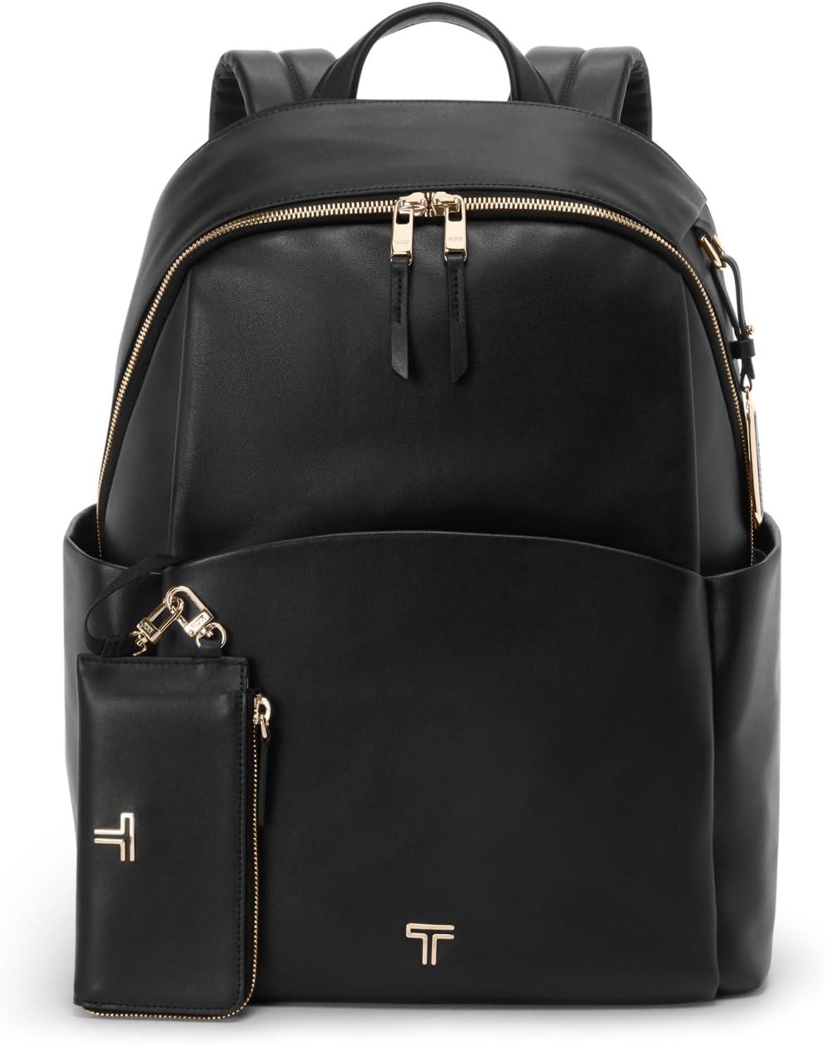 TUMI – Voyageur Raina Backpack – Women’s Premium Leather Backpack – Everyday Bag with Phone Pocket & Laptop Compartment – Black, Light Gold Hardware(Black/Light Gold)