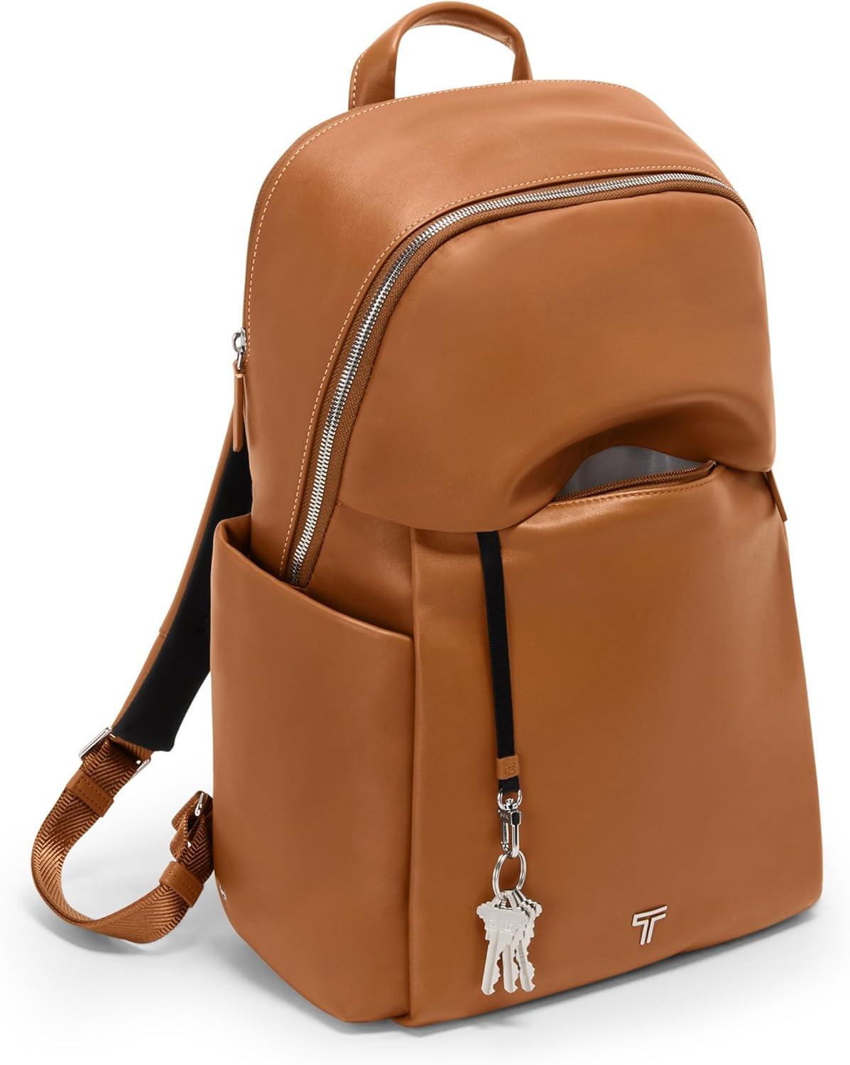 TUMI – Voyageur Raina Backpack – Women’s Premium Leather Backpack – Everyday Bag with Phone Pocket & Laptop Compartment – Sienna(Caramel)