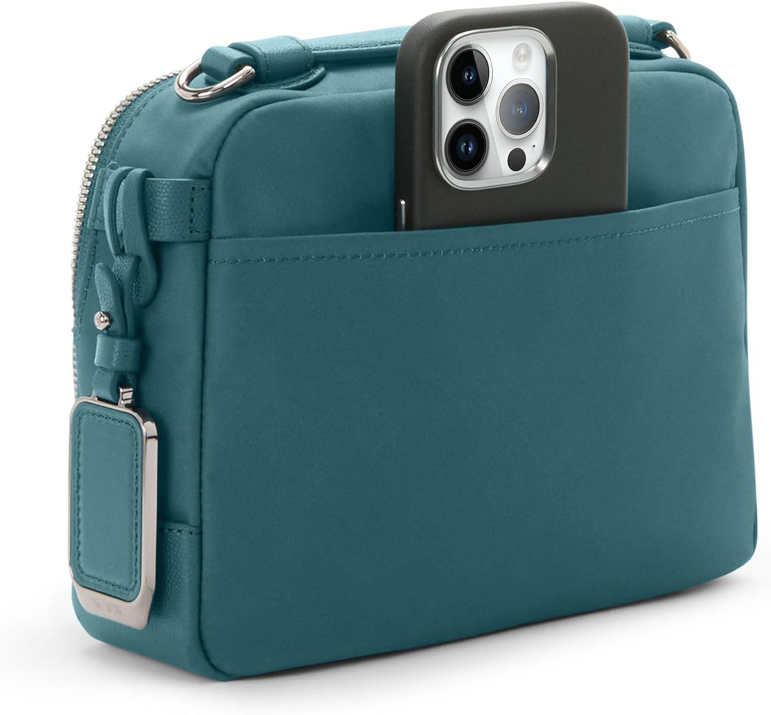 TUMI – Voyageur Teghan Crossbody – Women’s Compact Everyday Purse with Leather Trim(Lagoon)