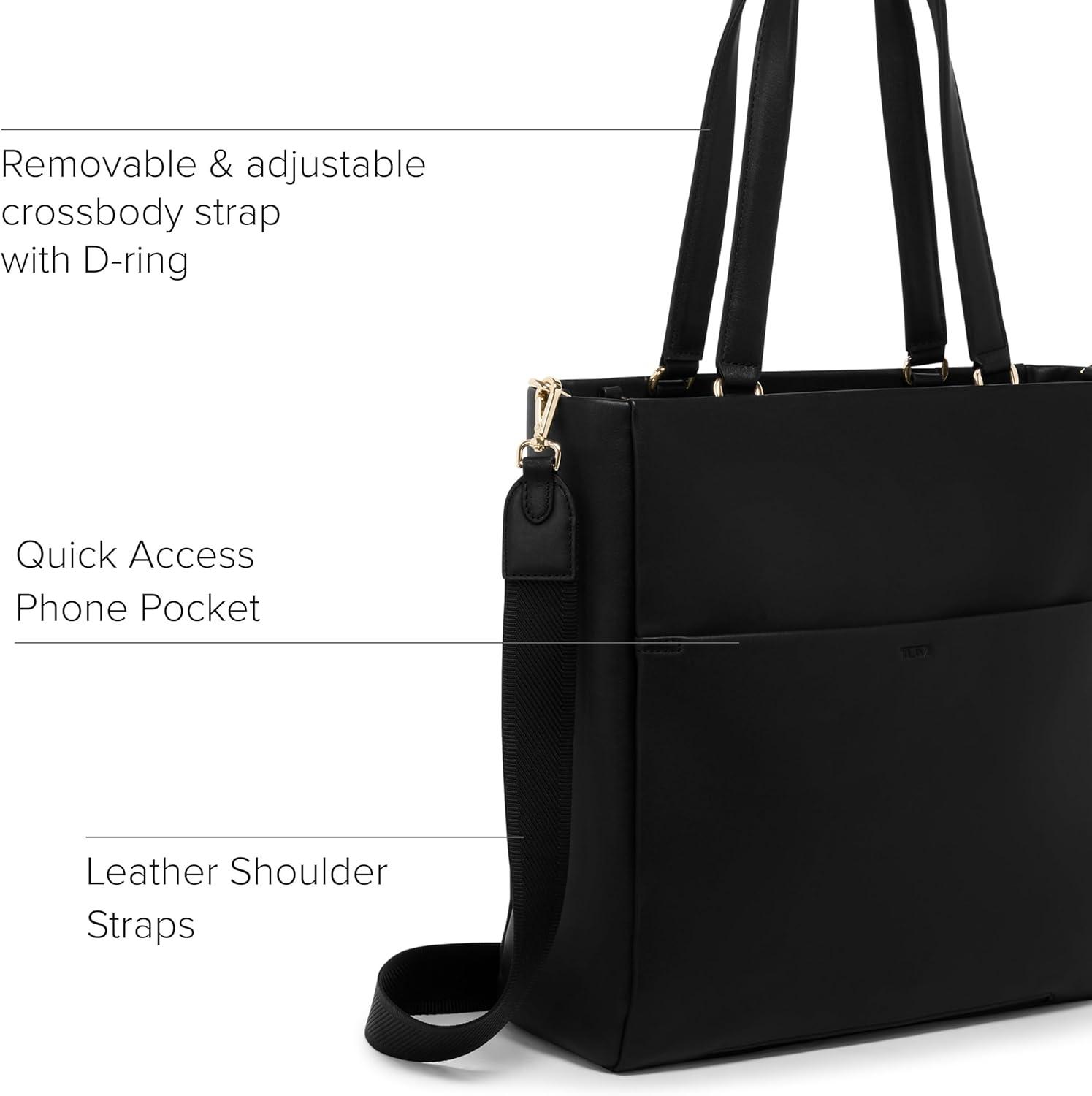 TUMI – Voyageur Vail Leather Tote – Women’s Lightweight, Multipurpose, Everyday Bag with Crossbody Strap and Laptop Storage(Black)