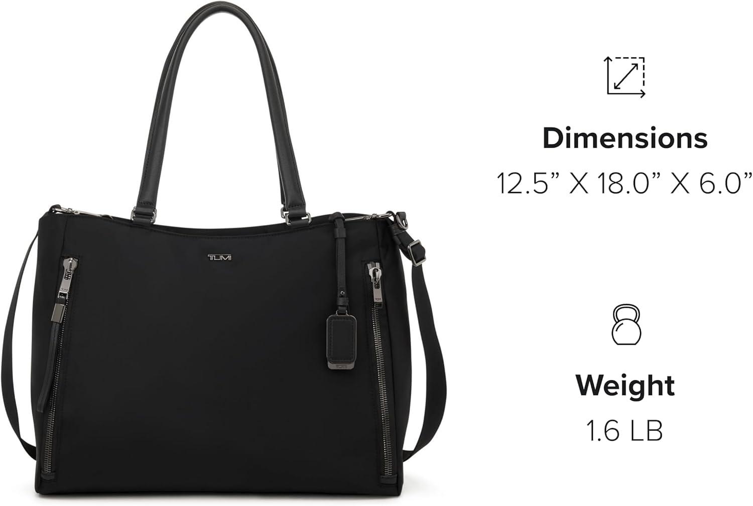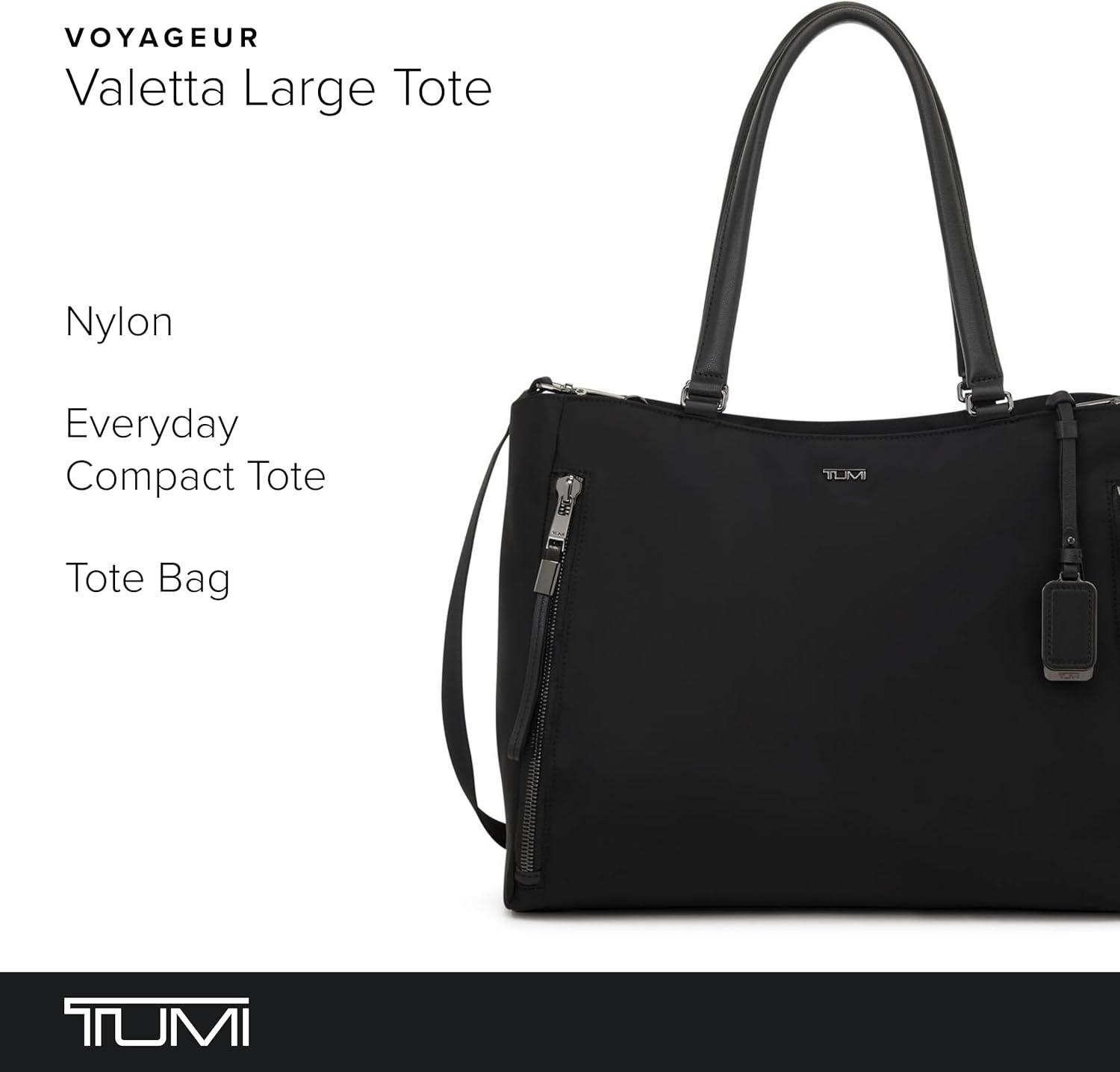 Travel comfortably and in style with the women's TUMI Voyageur Valetta Tote, the quintessential carry tote for the modern woman on the go. Meticulously crafted from premium, lightweight nylon, this tote bag offers a harmonious blend of elegance and practicality. Its spacious interior provides ample room for all your essentials, making it the perfect companion for everyday use or as a tote bag for travel. With a dedicated and padded laptop compartment, your tech stays safe, turning this handbag into a sleek laptop purse tote ideal for professionals. Attention to organization is evident in every stitch of this nylon tote handbag, featuring multiple pockets tailored to secure your valuables. Whether you're commuting to the office or navigating airport terminals, this office tote bag’s straps provide a comfortable grip, while the detachable crossbody strap offers versatility for hands-free carrying. Not only is this large tote bag designed to stand up to the demands of your busy lifestyle, but it also reflects your personal style. Embrace the fusion of sophistication and utility with this nylon tote bag, a statement piece that transcends the traditional boundaries of a tote handbag. We design for you. Our commitment to exceptional quality and high-performing products has made TUMI the leading lifestyle and accessories brand that travelers depend on consistently. This is what we call the TUMI Difference. By putting excellence and quality first, we are committed to creating quality TUMI products that have a lifelong purpose, are supported by our rigorous testing standards, use recycled materials, and our global repair network.