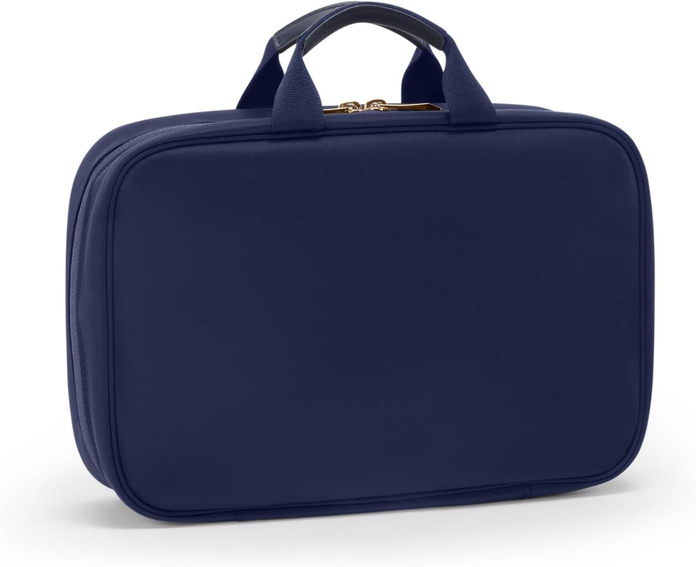 This travel makeup case blends durability and innovation with TUMI's renowned craftsmanship. It features a metal hanger for convenient hanging display, ideal for travel. Additionally, it includes the TUMI Tracer program for added security.