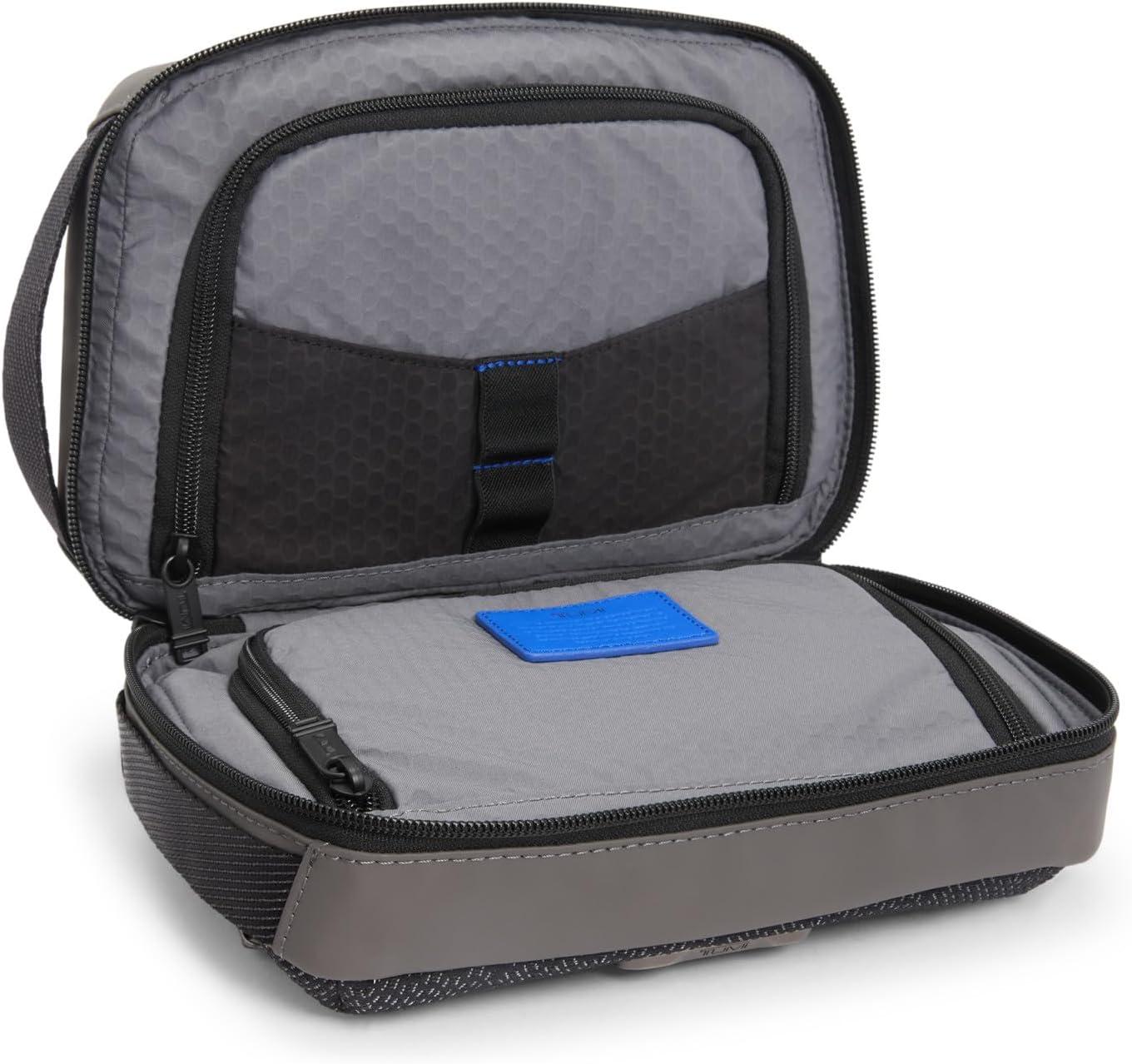 Travel comfortably and in style with the TUMI Alpha Bravo Response Travel Kit. Meticulously designed for the modern voyager, this travel toiletry bag is a fusion of functionality and style. Whether you're jet-setting across continents or embarking on a weekend getaway, this kit ensures your grooming essentials are neatly organized and within reach. The resilient ballistic nylon construction delivers durability, while the sleek aesthetics speak to TUMI's commitment to superior design.The travel kit boasts an array of features to cater to your every need. The front zip pocket, paired with a quick-access back slip pocket, offers additional space for smaller items. Inside, the lining helps your toiletries to stay in a clean environment, complemented by two elastic loops and two open pockets for effortless organization. The innovative TUMI Tracer program adds an extra layer of security, helping you recover lost or misplaced items.Function meets sophistication with this men's travel kit's thoughtful details. The variety of zippered pockets, including a water-resistant U-zip pocket, safeguard your toiletries against the elements. Measuring 6.3″ X 9.5″ X 3.5″ and weighing just 0.9 lb, it's the ideal size for packing in any travel bag or suitcase. Whether you're a seasoned traveler or simply seeking a reliable travel accessory, this TUMI Response Travel Kit is an indispensable addition to your journey.We design for you. Our commitment to exceptional quality and high performing products have made TUMI the leading lifestyle and accessories brand that travelers depend on consistently. This is what we call the TUMI Difference.By putting excellence and quality first, we are committed to creating quality TUMI products that have lifelong purpose, are supported by our rigorous testing standards, use recycled materials and our global repair network.