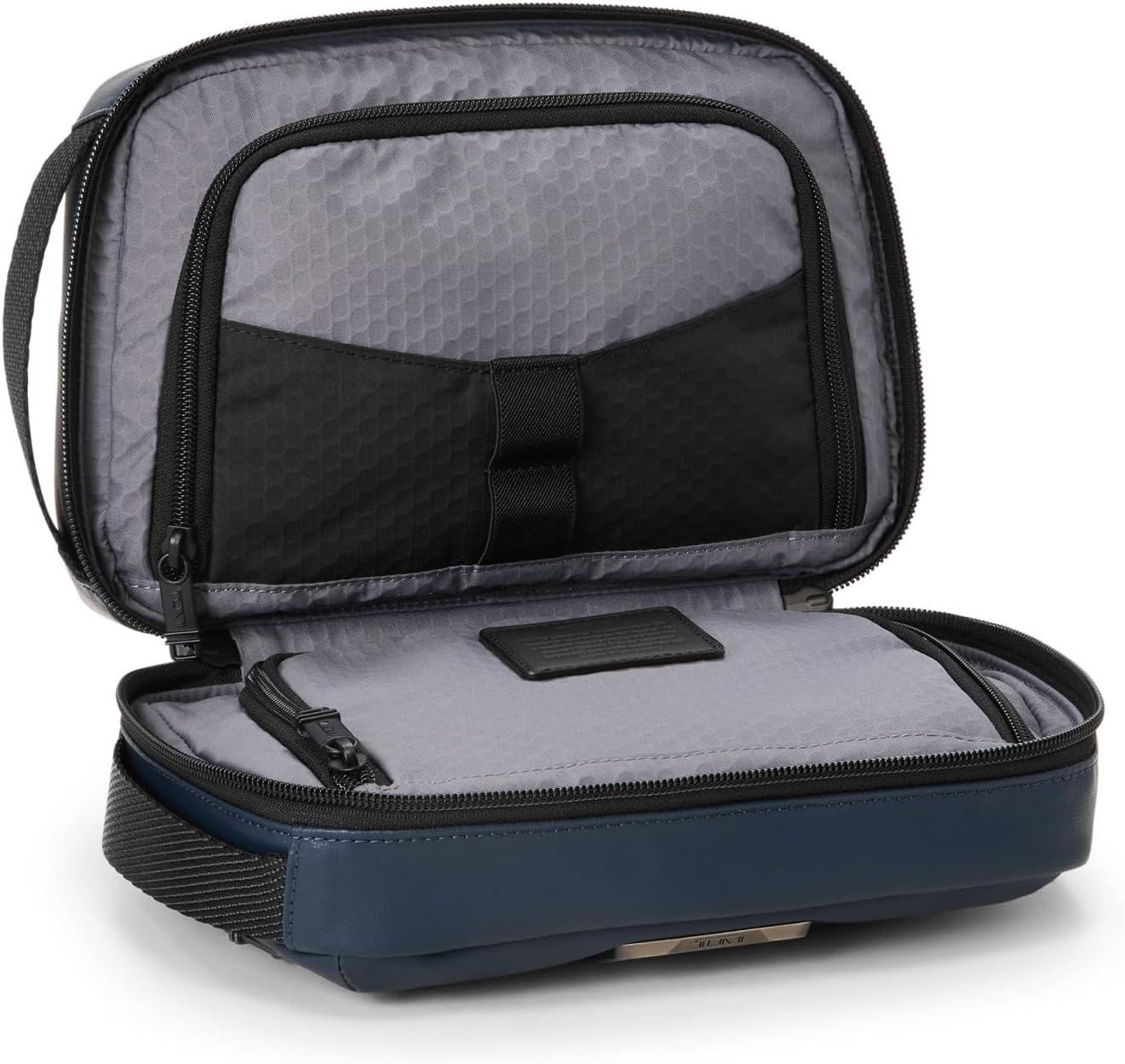 Travel comfortably and in style with the TUMI Alpha Bravo Response Travel Kit. Meticulously designed for the modern voyager, this travel toiletry bag is a fusion of functionality and style. Whether you're jet-setting across continents or embarking on a weekend getaway, this kit ensures your grooming essentials are neatly organized and within reach. The resilient ballistic nylon construction delivers durability, while the sleek aesthetics speak to TUMI's commitment to superior design.The travel kit boasts an array of features to cater to your every need. The front zip pocket, paired with a quick-access back slip pocket, offers additional space for smaller items. Inside, the lining helps your toiletries to stay in a clean environment, complemented by two elastic loops and two open pockets for effortless organization. The innovative TUMI Tracer program adds an extra layer of security, helping you recover lost or misplaced items.Function meets sophistication with this men's travel kit's thoughtful details. The variety of zippered pockets, including a water-resistant U-zip pocket, safeguard your toiletries against the elements. Measuring 6.3″ X 9.5″ X 3.5″ and weighing just 0.9 lb, it's the ideal size for packing in any travel bag or suitcase. Whether you're a seasoned traveler or simply seeking a reliable travel accessory, this TUMI Response Travel Kit is an indispensable addition to your journey.We design for you. Our commitment to exceptional quality and high performing products have made TUMI the leading lifestyle and accessories brand that travelers depend on consistently. This is what we call the TUMI Difference.By putting excellence and quality first, we are committed to creating quality TUMI products that have lifelong purpose, are supported by our rigorous testing standards, use recycled materials and our global repair network.