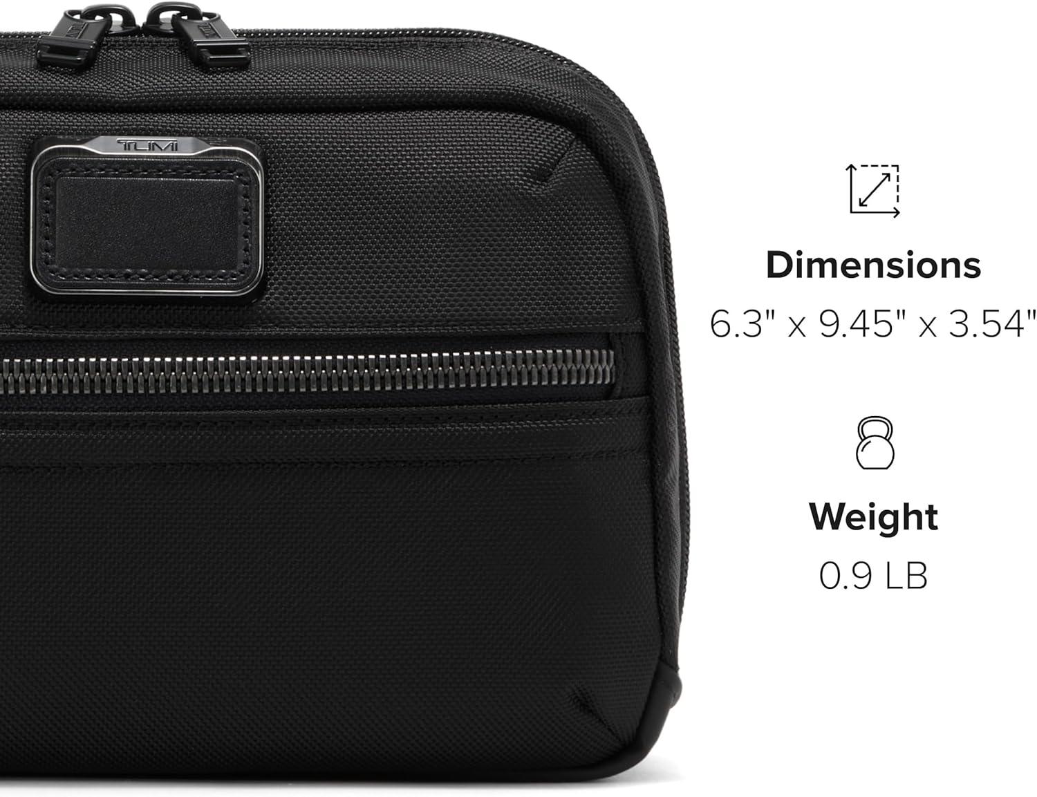Travel comfortably and in style with the TUMI Alpha Bravo Response Travel Kit. Meticulously designed for the modern voyager, this travel toiletry bag is a fusion of functionality and style. Whether you're jet-setting across continents or embarking on a weekend getaway, this kit ensures your grooming essentials are neatly organized and within reach. The resilient ballistic nylon construction delivers durability, while the sleek aesthetics speak to TUMI's commitment to superior design.The travel kit boasts an array of features to cater to your every need. The front zip pocket, paired with a quick-access back slip pocket, offers additional space for smaller items. Inside, the lining helps your toiletries to stay in a clean environment, complemented by two elastic loops and two open pockets for effortless organization. The innovative TUMI Tracer program adds an extra layer of security, helping you recover lost or misplaced items.Function meets sophistication with this men's travel kit's thoughtful details. The variety of zippered pockets, including a water-resistant U-zip pocket, safeguard your toiletries against the elements. Measuring 6.3″ X 9.5″ X 3.5″ and weighing just 0.9 lb, it's the ideal size for packing in any travel bag or suitcase. Whether you're a seasoned traveler or simply seeking a reliable travel accessory, this TUMI Response Travel Kit is an indispensable addition to your journey.We design for you. Our commitment to exceptional quality and high performing products have made TUMI the leading lifestyle and accessories brand that travelers depend on consistently. This is what we call the TUMI Difference.By putting excellence and quality first, we are committed to creating quality TUMI products that have lifelong purpose, are supported by our rigorous testing standards, use recycled materials and our global repair network.